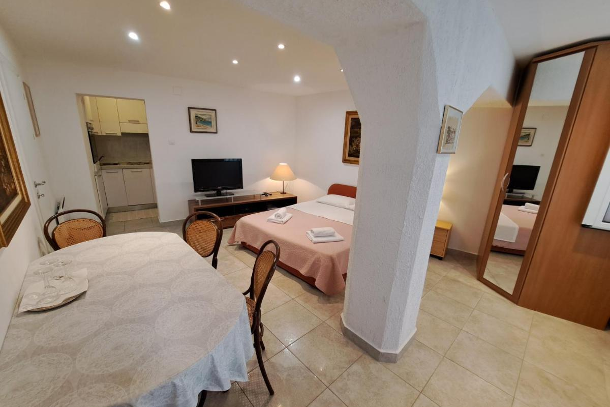 The nicely decorated studio apartment Bauk is located on the ground floor of a family house and is located in Draga Bašćanska, not far from Baška. The studio apartment consists of a dining room, living room, double bed, extra bed and one bedroom with one single bed, SAT/TV, bathroom, air conditioning, WI-Fi and a terrace in front of the apartment. The apartment also has a parking space in front of the house. The maximum number of guests who can stay in this apartment is 4 people.