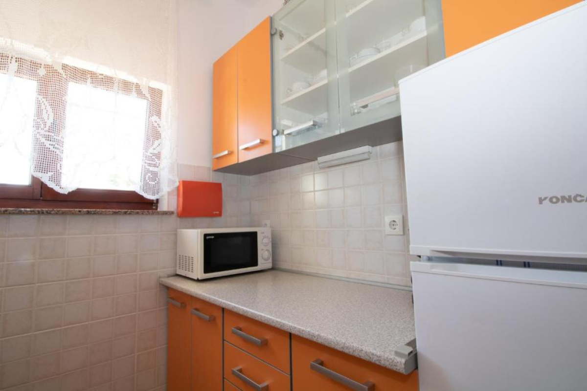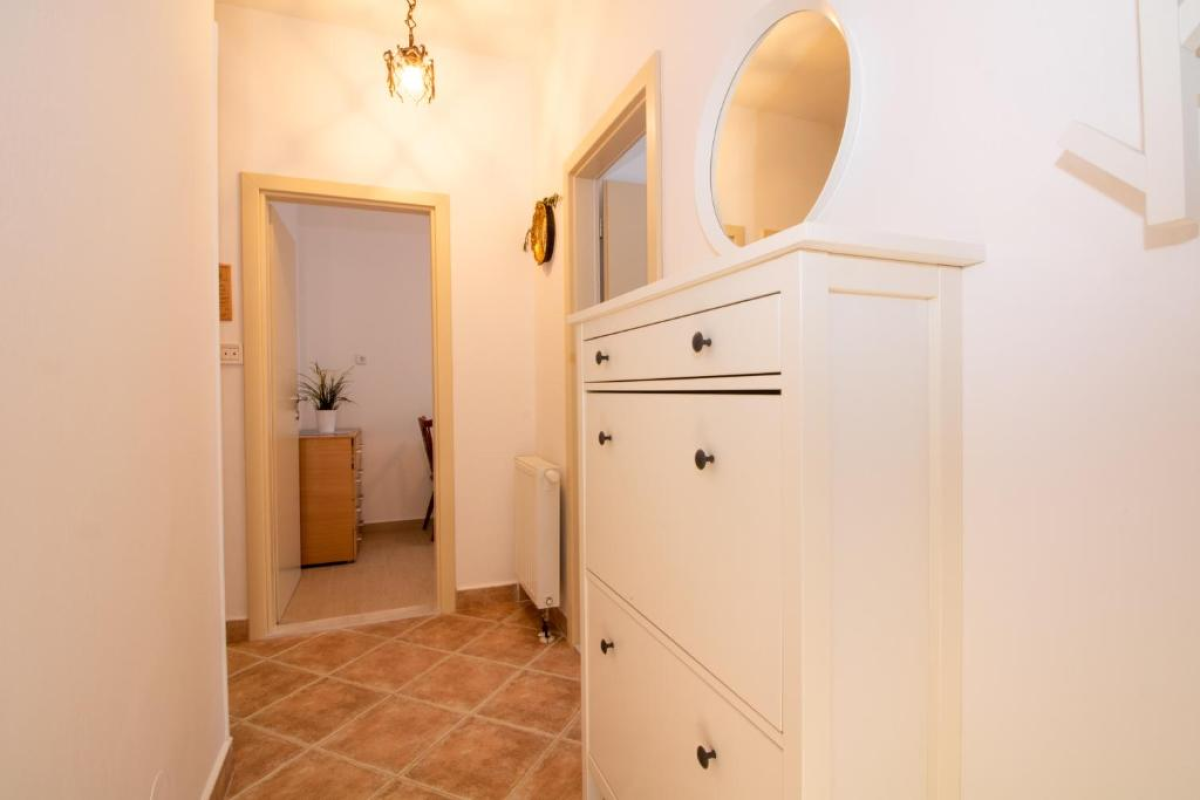 The apartment on the ground floor of a family house, ideal for two people, is equipped with modern amenities that ensure a comfortable and relaxing stay. It consists of a spacious bedroom with a double bed, an elegantly decorated living room with a sofa and TV, and a fully equipped kitchen with a refrigerator, stove, dishwasher, microwave and all necessary appliances. The apartment has its own entrance, providing complete privacy, and is surrounded by a peaceful garden ideal for relaxation. Guests can enjoy the terrace, perfect for morning coffee or evening meals outdoors. Wi-Fi internet, air conditioning, and free parking ensure additional comfort during your stay.