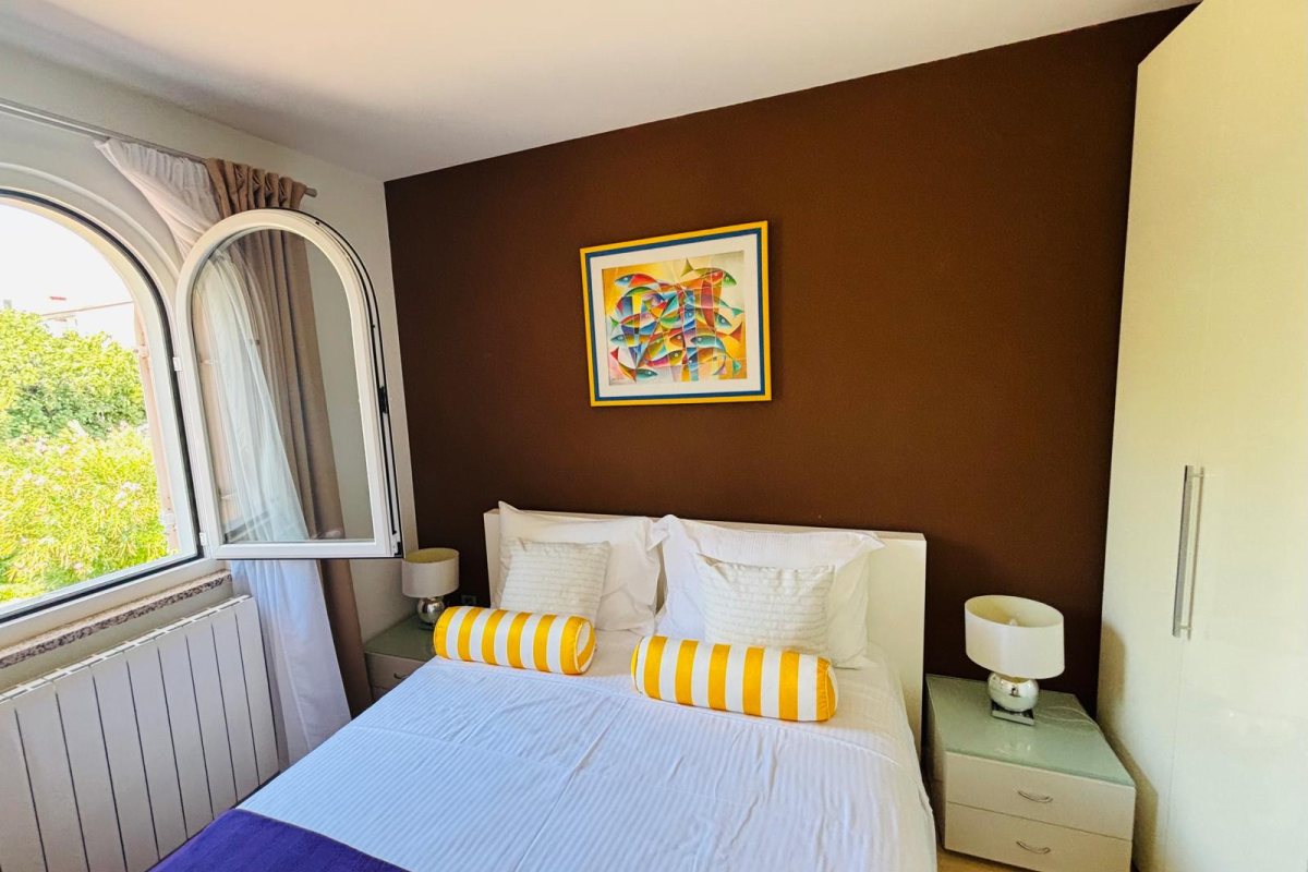 The Daisy apartment is located on the first floor in a quiet part of Baška. This beautiful newly renovated and spacious apartment offers you everything you need for a pleasant stay. The apartment consists of one double room, kitchen with dining room, living room, large balcony with beautiful view and bathrooms. The Daisy apartment is equipped with a dishwasher, an oven, SAT- TV, a WiFi, air conditioner, a barbecue in the yard and everything you need for the perfect stay.