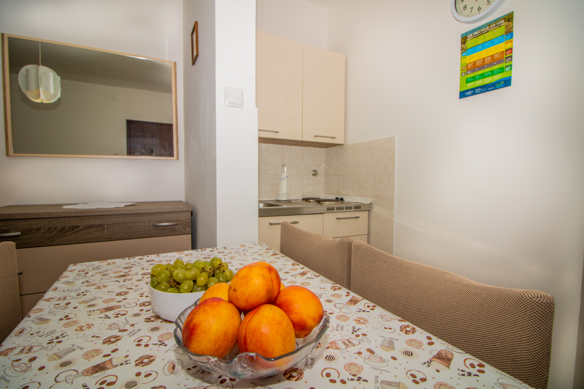 Cute Studio Apartment on the ground floor of a family house. The Studio Apartment has a small but functional kitchen, bathroom, one double bedroom, SAT/TV, air conditioning, Wi-Fi and a terrace. The parking lot is in front of the house. The maximum number of guests who can stay in this apartment is 3 people.