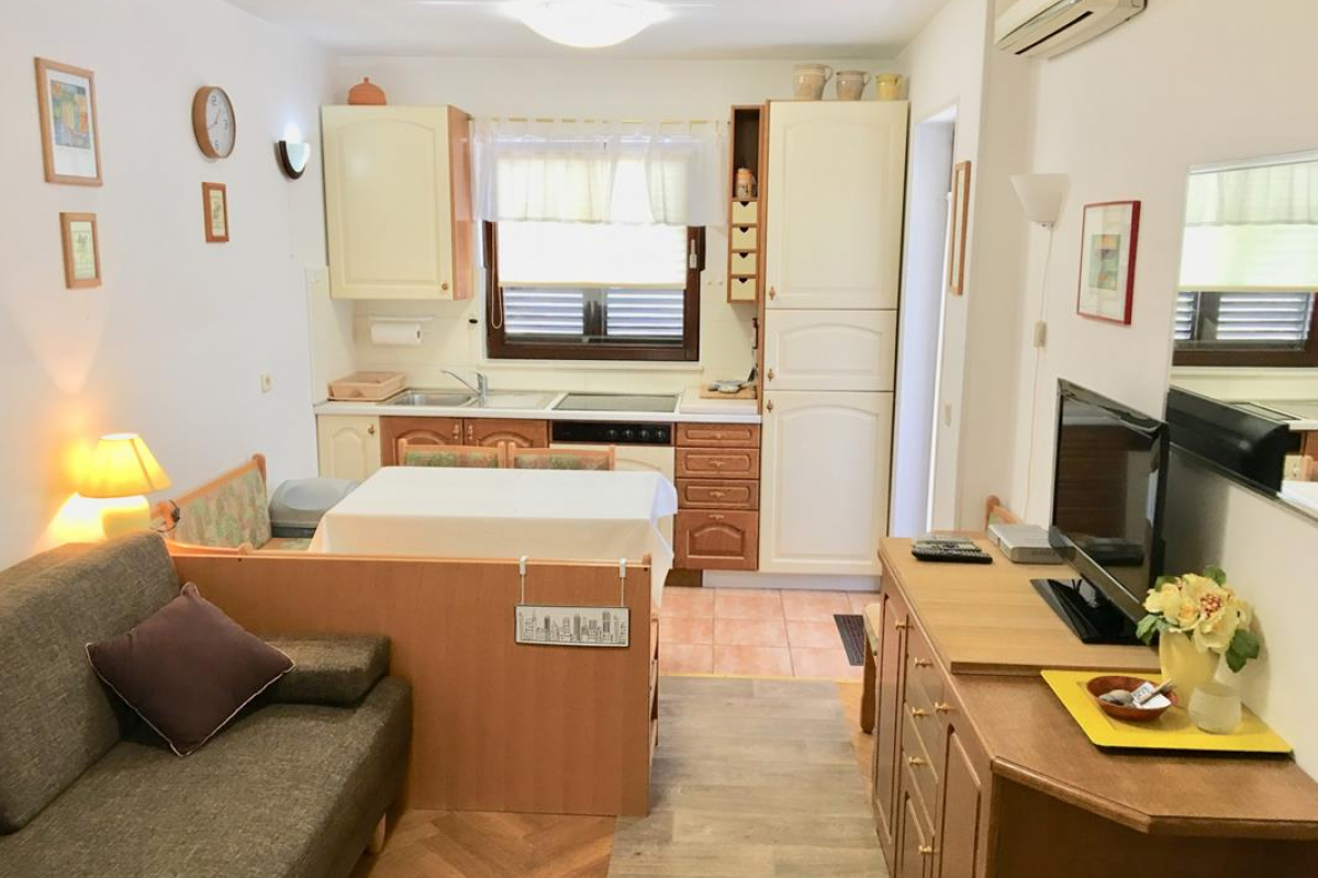 Beautiful apartment on the 1st floor of a family house near the sea. The apartment has one double bedroom, kitchen with living room / dining room, bathroom, air conditioning, satellite TV, wifi, and a beautiful terrace. On the ground floor there is a barbecue space. Parking is located in front of the house. The maximum number of guests that can stay in this apartment is 4 people.