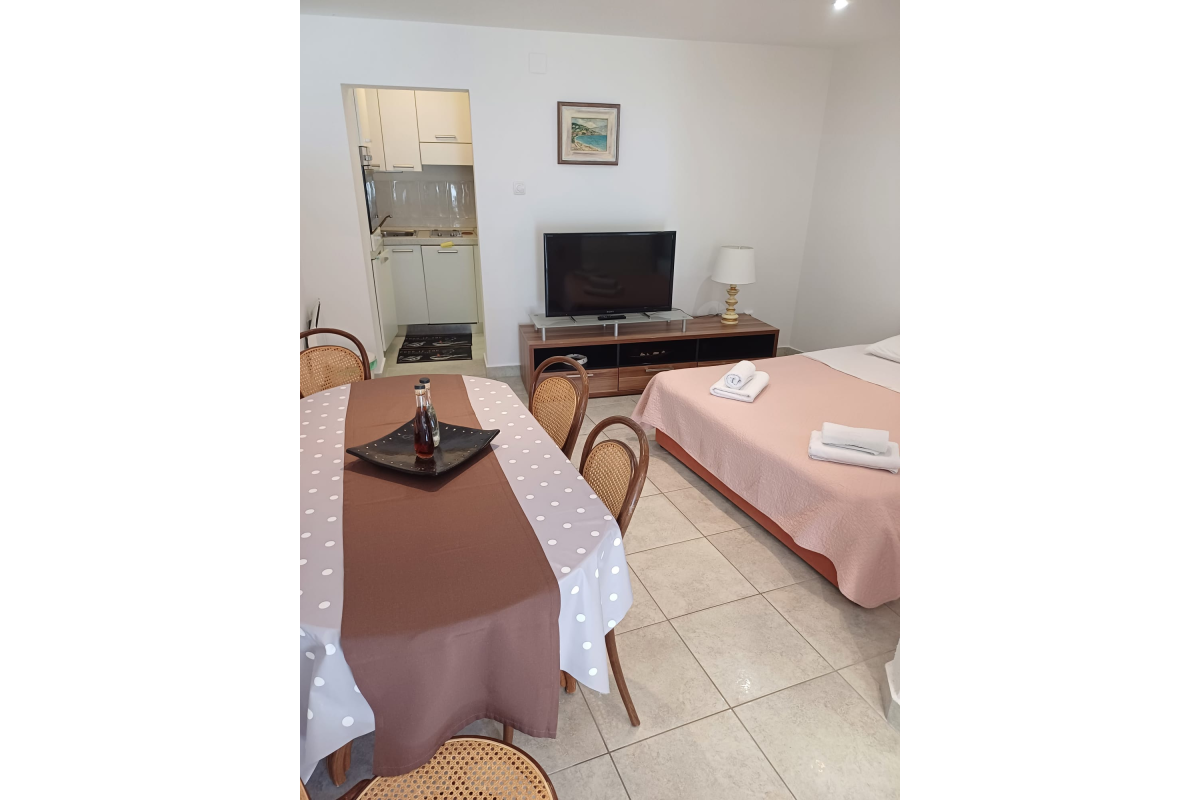 The nicely decorated studio apartment Bauk is located on the ground floor of a family house and is located in Draga Bašćanska, not far from Baška. The studio apartment consists of a dining room, living room, double bed, extra bed and one bedroom with one single bed, SAT/TV, bathroom, air conditioning, WI-Fi and a terrace in front of the apartment. The apartment also has a parking space in front of the house. The maximum number of guests who can stay in this apartment is 4 people.