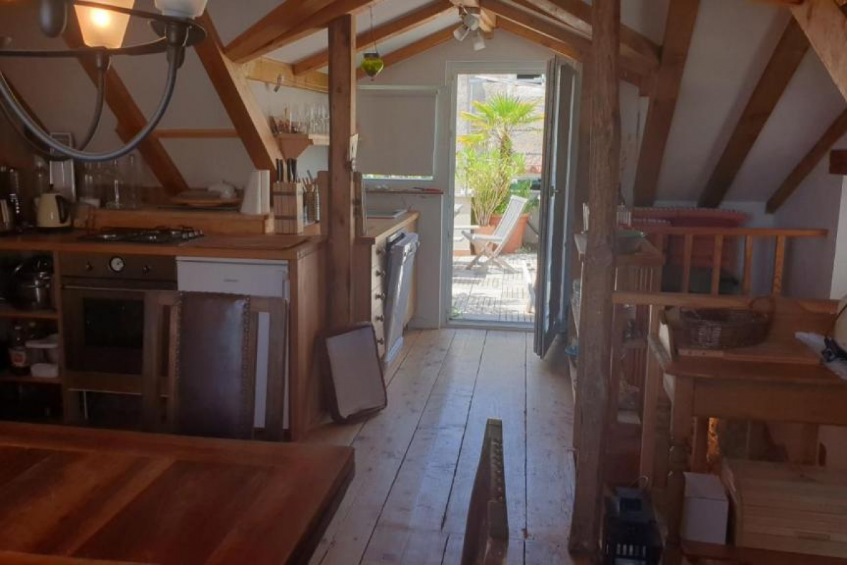 and on the first floor there is a kitchen and dining table and access to a beautiful terrace.