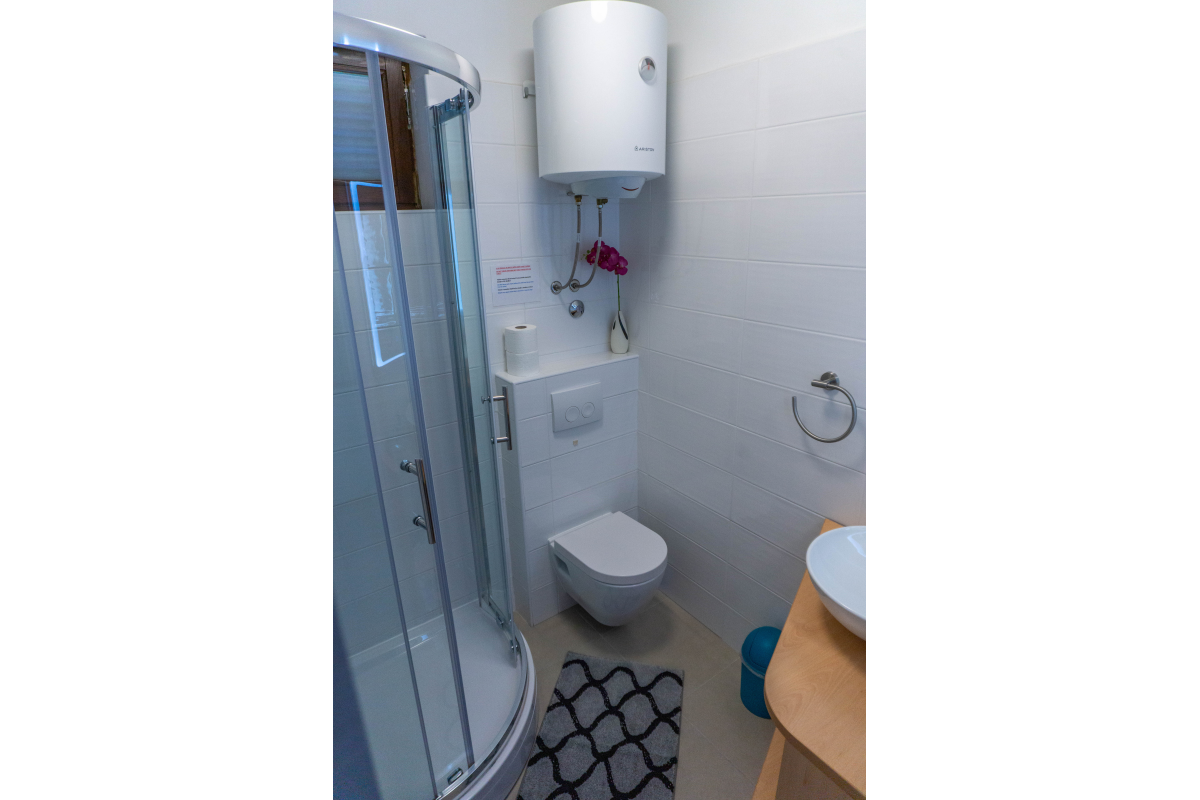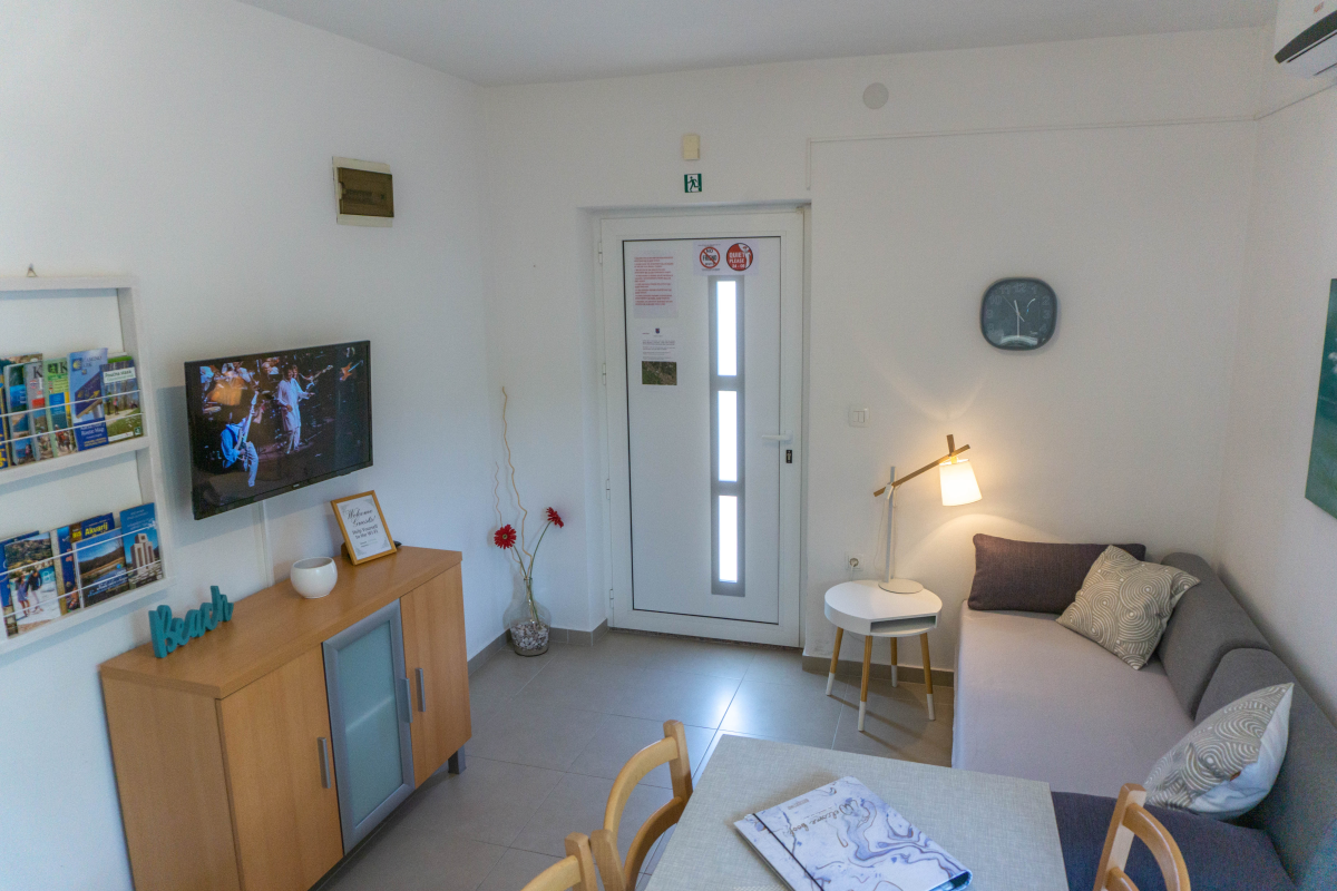 Apartment Jadran Nr. 2 is located on the ground floor of a family house and has a beautiful exit to the garden. It is 300 meters from the sea and the main beach. The apartment consists of a living room, kitchen, bathroom, one bedroom and a terrace. The living room has a sofa (extra bed for a person up to 18 years old), satellite Smart TV and an equipped mini kitchen (the kitchen is equipped with a refrigerator with freezer, electric stove, kettle, microwave, filter coffee maker, toaster and all the utensils needed for cooking). The bedroom has one double bed. The bathroom has a shower and a hairdryer. The apartment is air-conditioned (heating/cooling) and has free internet access (Wi-Fi). Parking is located in front of the house.