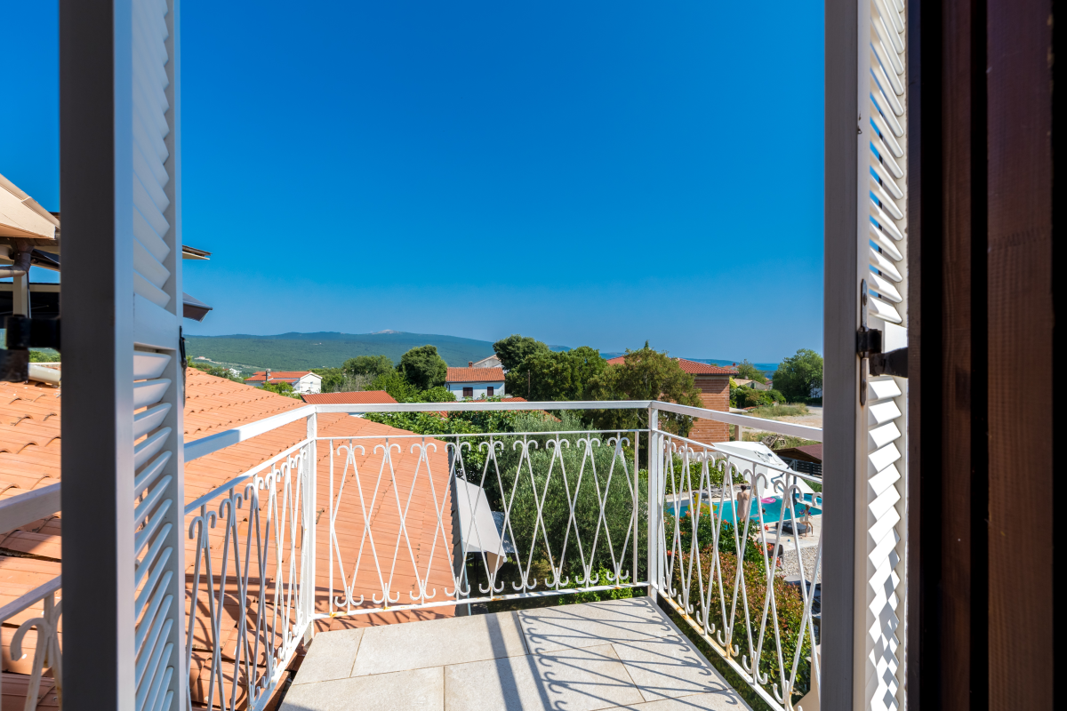 Beautiful apartment on the first floor of a family house in a quiet location in Kornić. The apartment consists of one double bedroom and one room with a bunk bed, kitchen, living room with sofa, dining room, oven, dishwasher, bathroom and balcony with a view of the place. The apartment also has air conditioning, satellite TV and WiFi. The maximum number of people in this apartment is 4.Parking is located in front of the apartment.