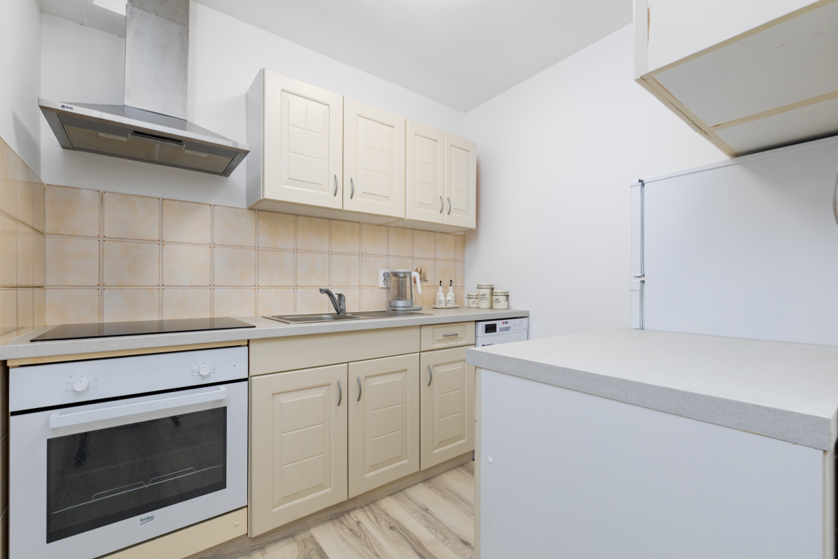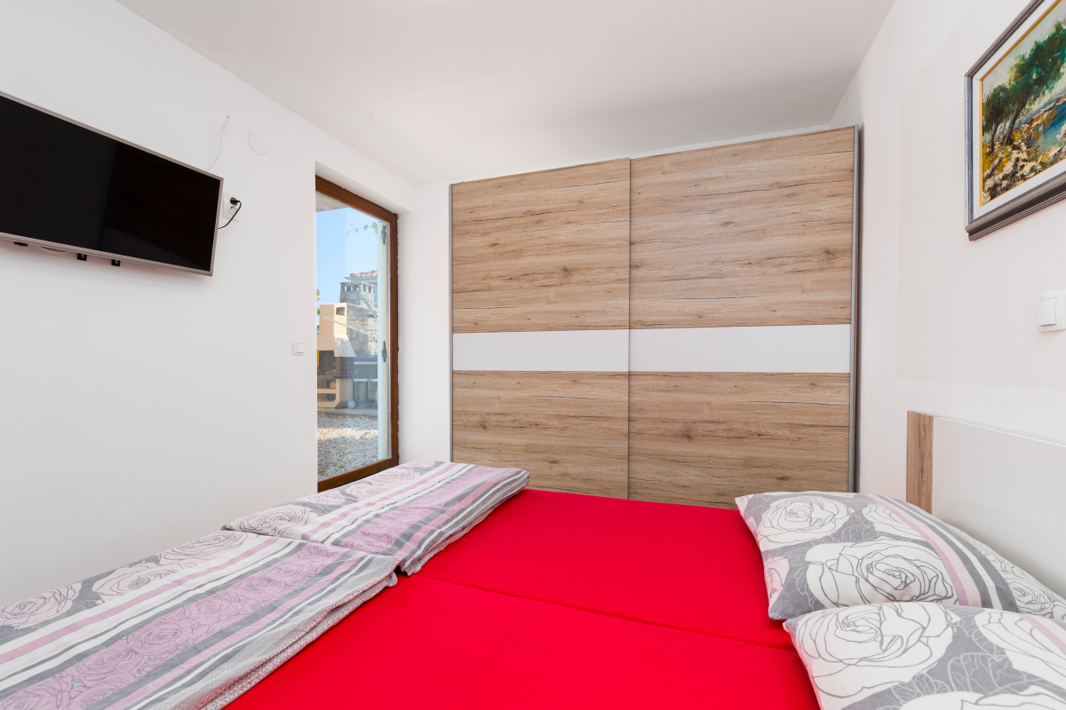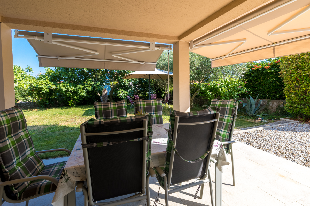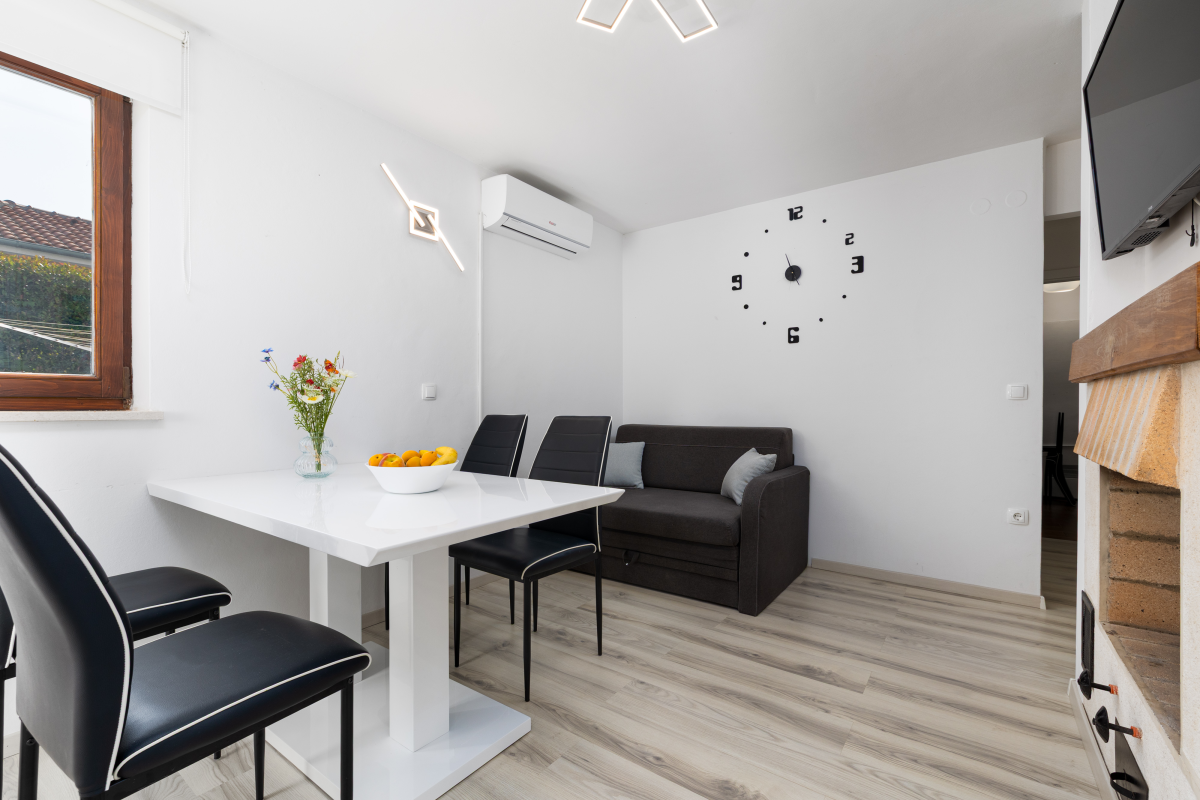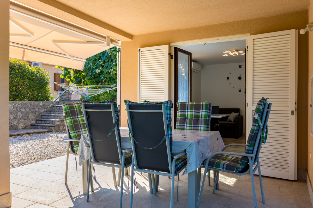 Beautiful apartment on the ground floor of a family house in a quiet location in Kornić. The apartment consists of two double bedrooms, a kitchen, a living room with a sofa bed, a dining room, an oven, a dishwasher, a bathroom and a terrace with a wonderful exit to the garden. The apartment also has air conditioning, satellite TV, WiFi and a barbecue. . The maximum number of people in this apartment is 6.Parking is located in front of the apartment.
