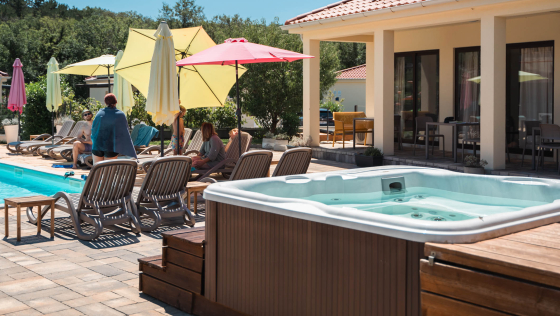 The resort consists of 12 comfortable apartments with underfloor heating, an outdoor sauna, a jacuzzi, a heated swimming pool, a barbecue area and a relaxation area.
