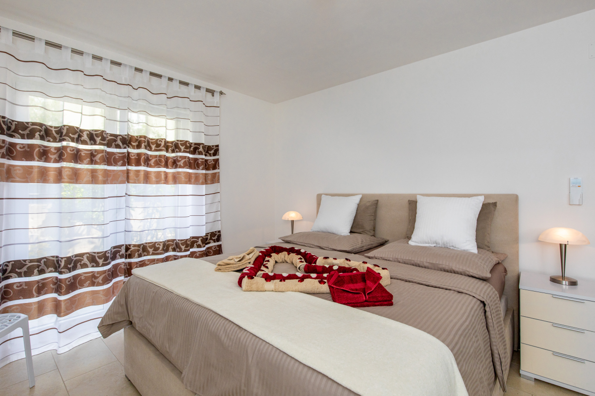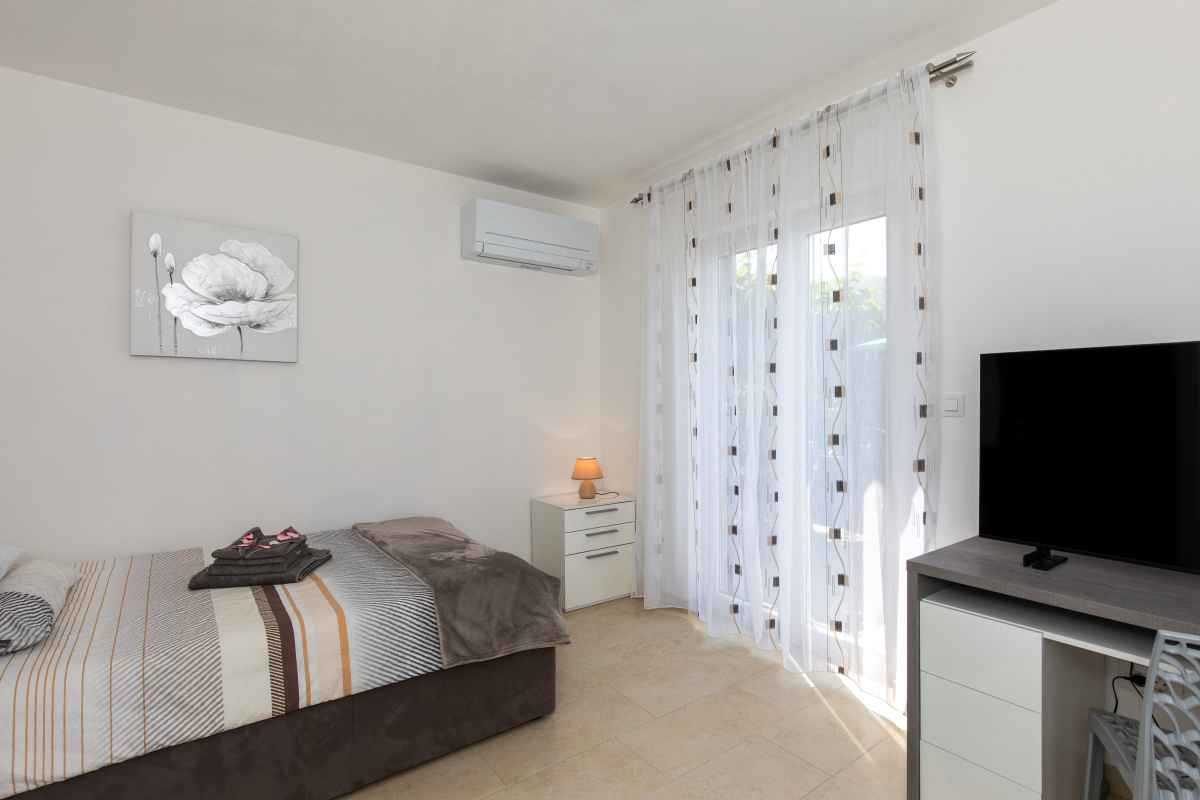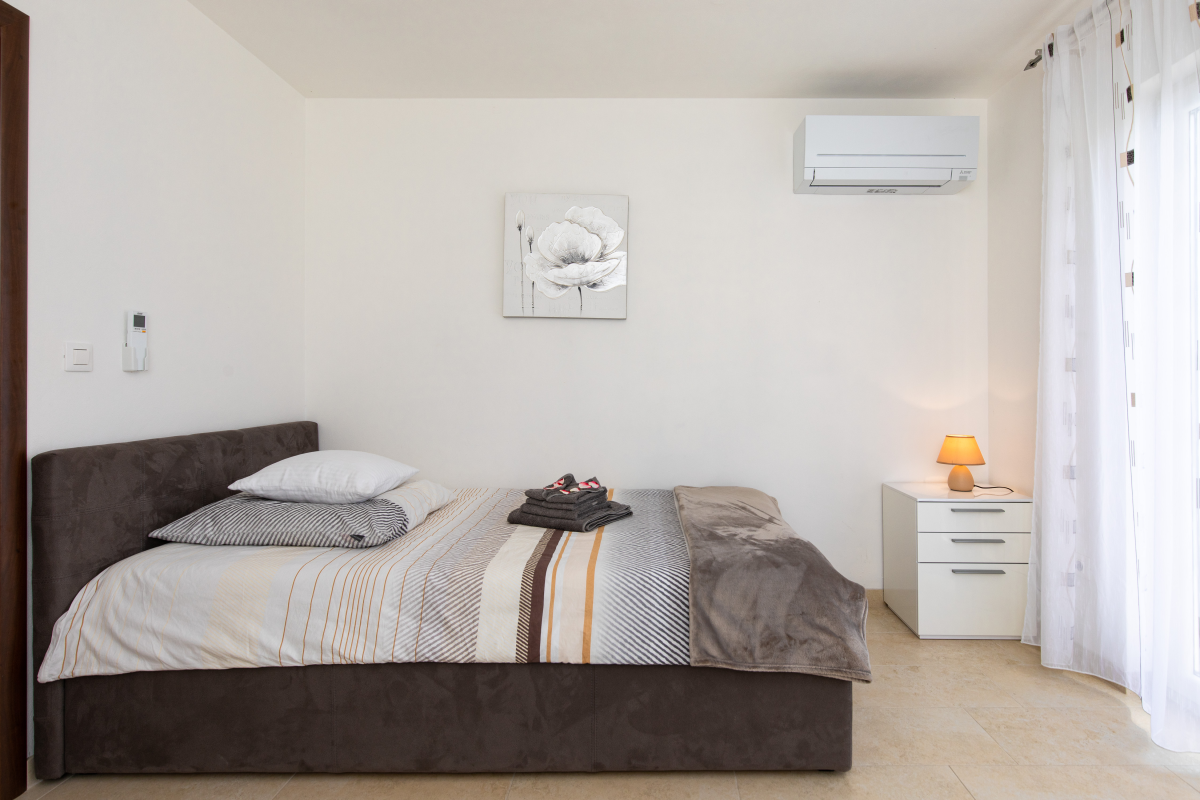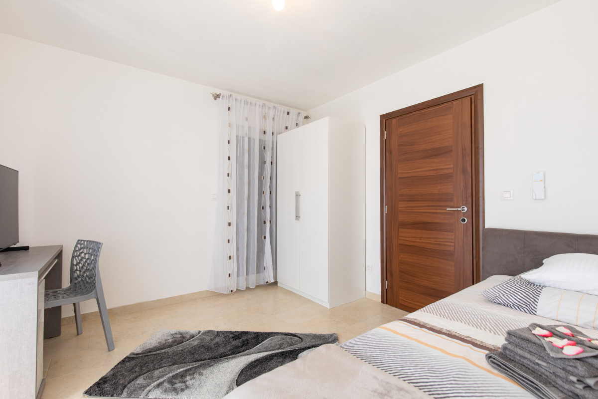 Newly decorated apartment in Jurandvor, not far from Baška. The apartment is located in a quiet location and has two double bedrooms,two single bedrooms, kitchen with living room / dining room, oven, dishwasher, three bathrooms, washing machine, air conditioning,satellite TV, WiFi and a terrace. There is a small gym in the basement of the apartment. The parking lot is in front of the house.