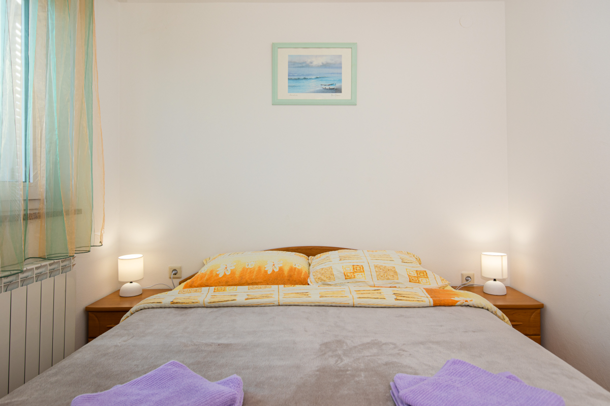 Apartment Diego is located in a quiet location in Kornic near the town of Krk. Beautiful apartment on the 1st floor of a family house has two bedrooms withdouble beds, kitchen with living / dining room, oven,dishwasher, bathroom, washing machine, air conditioning, satellite TV,WiFi and balcony. Parking is located in front of the house.