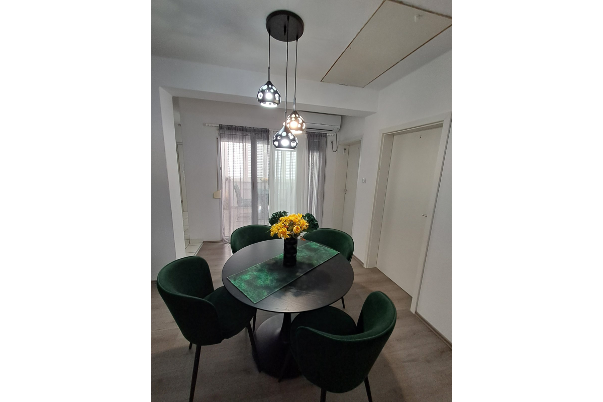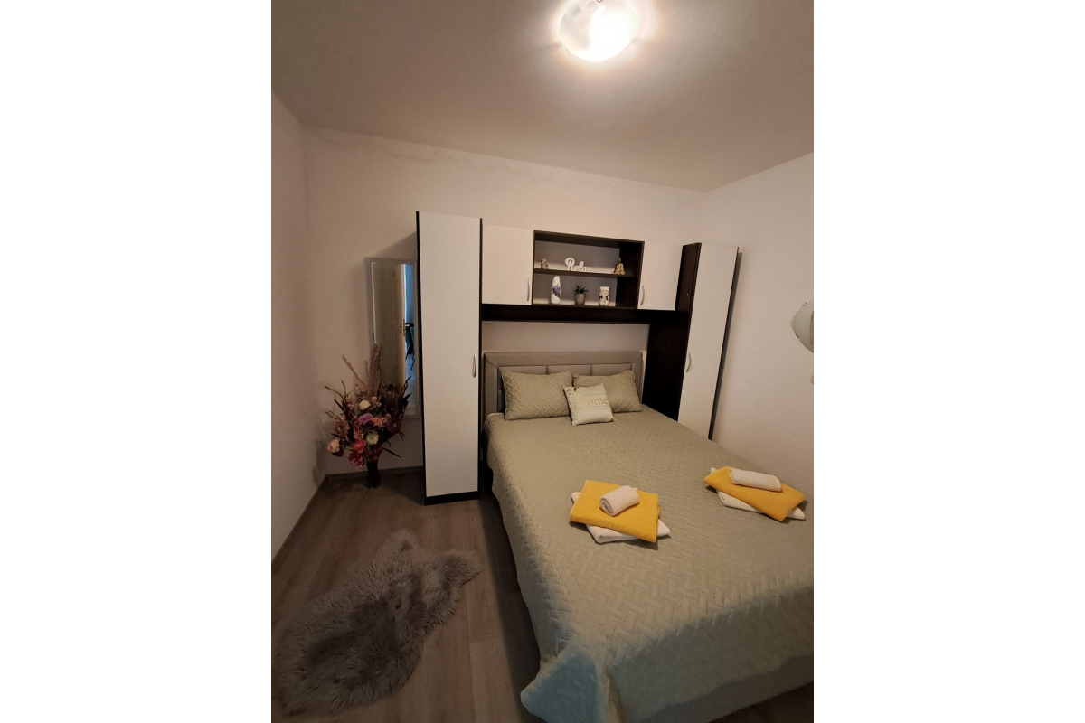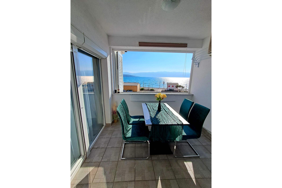 Beautiful apartment on the first floor located by the sea. The apartment has two double bedrooms, kitchen with living room living / dining room, bathroom and balcony with sea view. The apartment has air conditioning, satellite TV and WiFi. Parking is located in front of the apartment. Maximum number of guests in this apartment is 4 people.