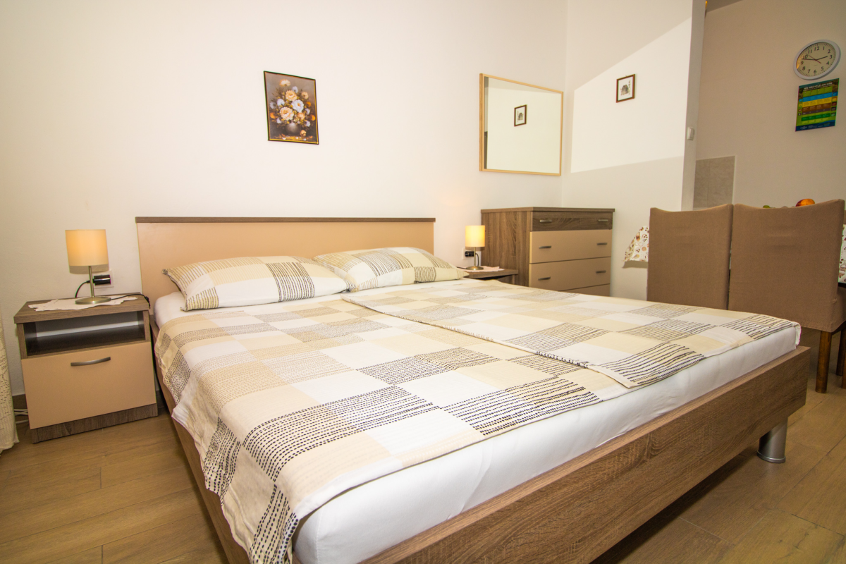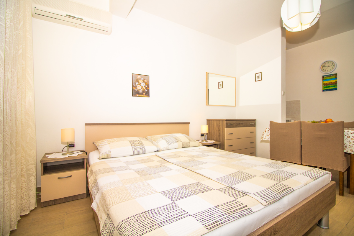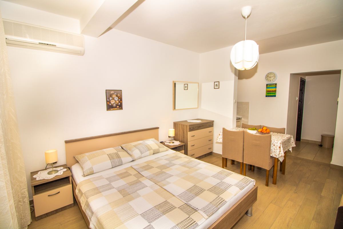 Cute Studio Apartment on the ground floor of a family house. The Studio Apartment has a small but functional kitchen, bathroom, one double bedroom, SAT/TV, air conditioning, Wi-Fi and a terrace. The parking lot is in front of the house. The maximum number of guests who can stay in this apartment is 3 people.