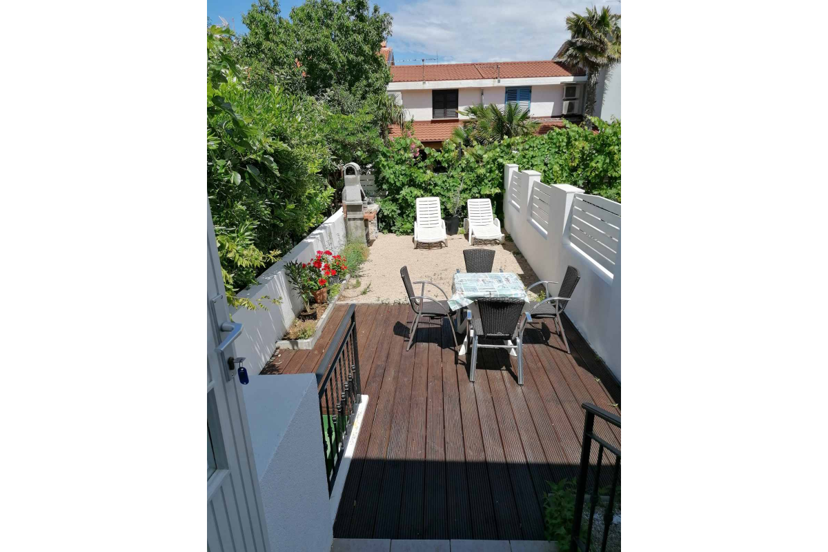 Beautiful newly furnished apartment only 250 meters from the sea. The apartment is located on the ground floor and consists of one double bedroom, kitchen with dining room, living room with sofa bed, bathroom, air conditioning and WI-Fi. In front of the apartment there is a large terrace with garden furniture and barbecue. The maximum number of guests that can stay in this apartment is 4 people.