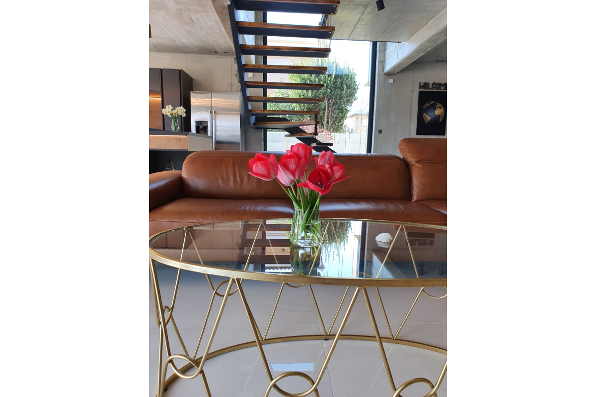 Ground floor: The ground floor has a living room and dining room with kitchen and bathroom. The living area has access to a beautiful terrace with a heated pool.