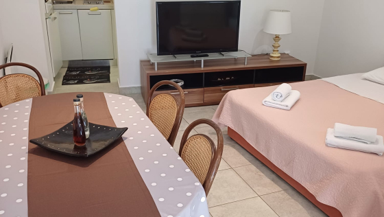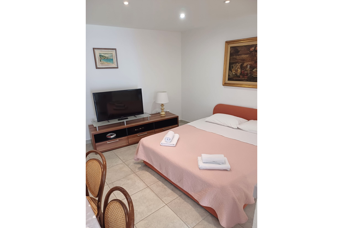 Das hübsch eingerichtete Studio-Apartment Bauk befindet sich im Erdgeschoss eines Familienhauses und liegt in Draga Bašćanska, nicht weit von Baška. Das Studio-Apartment besteht aus einem Esszimmer, einem Wohnzimmer, einem Doppelbett, einem Zustellbett und einem Schlafzimmer mit einem Einzelbett, SAT/TV, Badezimmer, Klimaanlage, WLAN und einer Terrasse vor dem Apartment. Zur Wohnung gehört außerdem ein PKW-Stellplatz vor dem Haus. Die maximale Anzahl der Gäste, die in diesem Apartment übernachten können, beträgt 4 Personen.