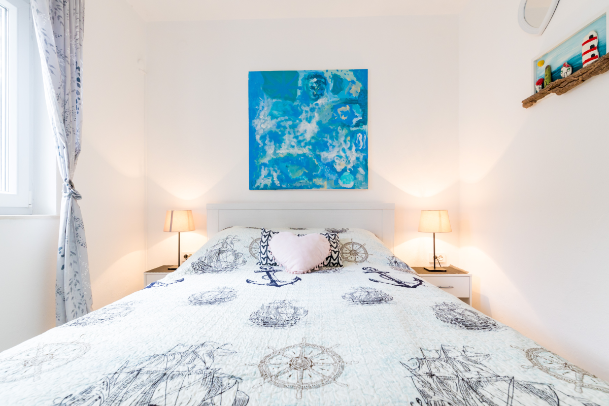 Schöne neu eingerichtete Wohnung nur 250 Meter vom Meer entfernt. Die Wohnung befindet sich im Erdgeschoss und besteht aus einem Schlafzimmer mit Doppelbett, Küche mit Esszimmer, Wohnzimmer mit Schlafsofa, Bad, Klimaanlage und WI-Fi. Vor der Wohnung befindet sich eine große Terrasse mit Gartenmöbeln und Grill. Die maximale Anzahl von Gästen, die in diesem Apartment übernachten können, beträgt 4 Personen.