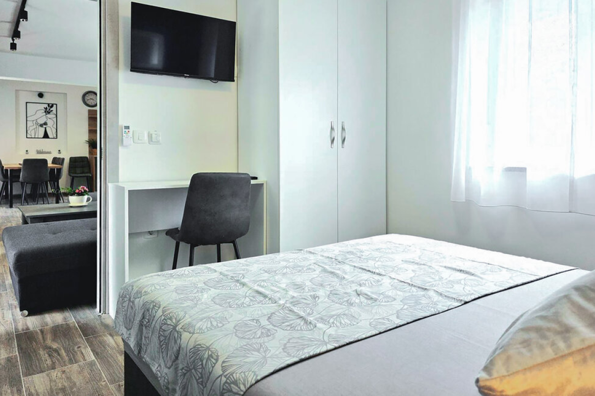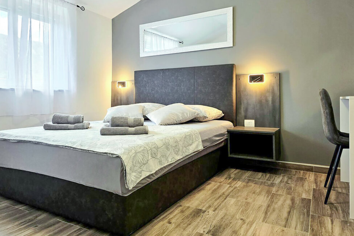 Jedes Zimmer verfügt über ein eigenes Bad mit Dusche und bietet so maximalen Komfort und Privatsphäre für alle Gäste. Darüber hinaus ist jedes Zimmer mit Klimaanlage und Sat-TV ausgestattet.