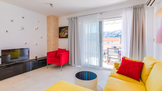 Apartment Daisy befindet sich im ersten Stock im ruhigen Bereich von Baška. Diese schöne neu renovierte und geräumige Wohnung bietet Ihnen alles, was Sie für einen angenehmen Aufenthalt brauchen. Diese schöne Wohnung besteht aus zwei Doppelzimmern, Küche mit Esszimmer, Wohnzimmer, großen Balkon mit atemberaubender Aussicht und Badezimmer. Apartment Daisy ist mit Geschirrspüler, Ofen, Sat-TV, WLAN und Klimaanlage, Grill im Hof und allem, was Sie für perfekte Feiertage benötigen, ausgestattet.