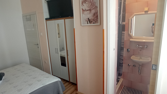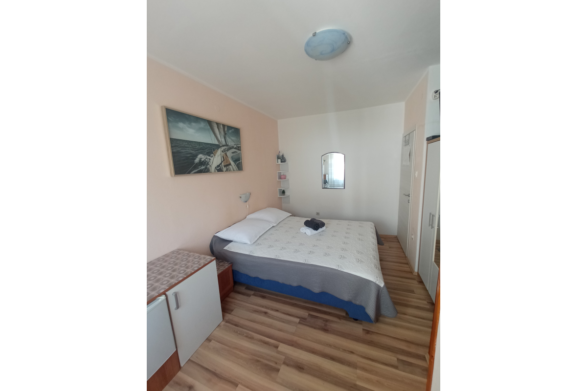 Komfortables Zimmer, nur 300 m vom Meer entfernt. Das Zimmer befindet sich im ersten Stock und verfügt über ein Doppelbett, Sat-TV, WLAN, Klimaanlage, Minikühlschrank und Badezimmer. Das Zimmer verfügt über keine Terrasse. Die maximale Anzahl an Gästen, die in diesem Zimmer übernachten können, beträgt 2 Personen.