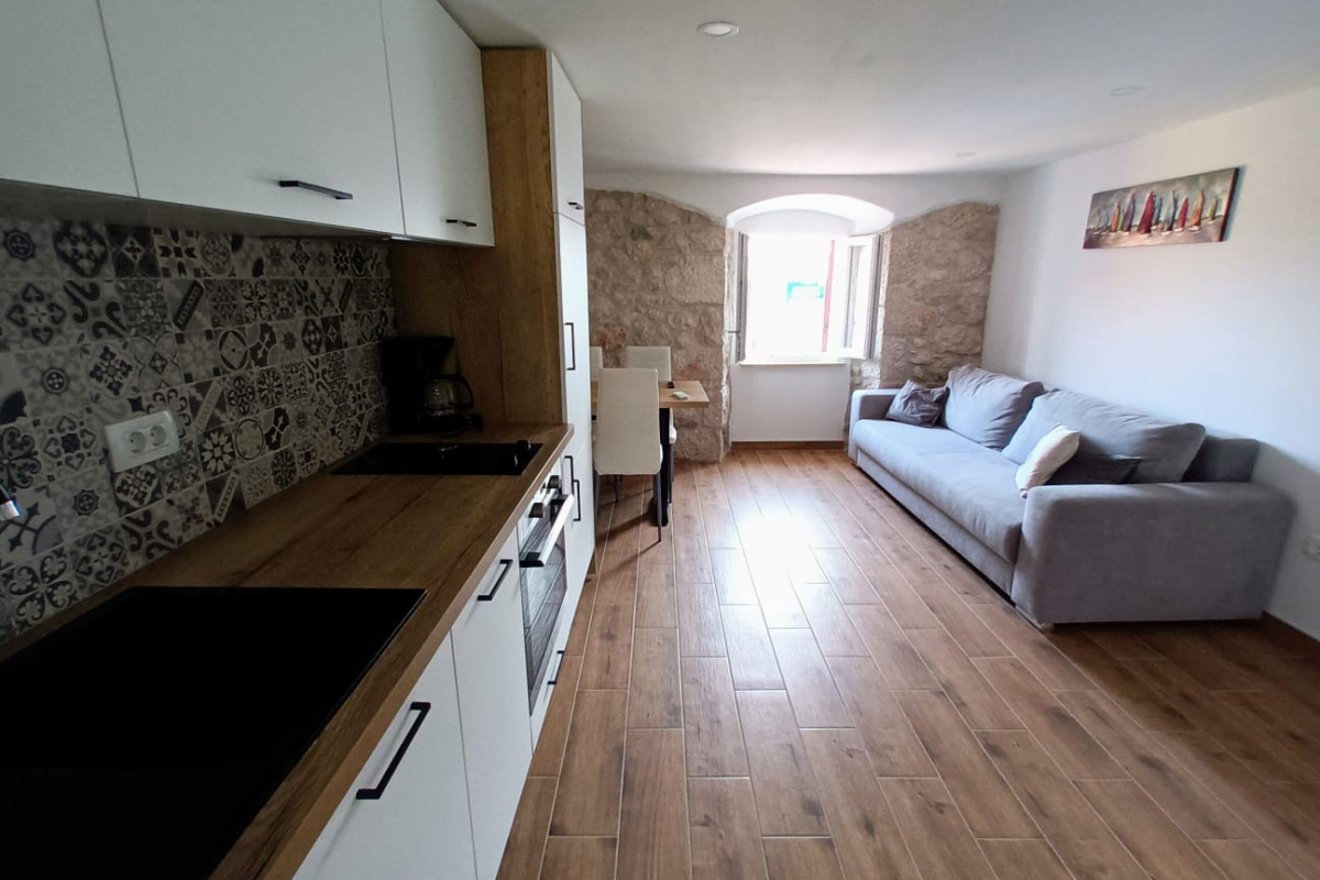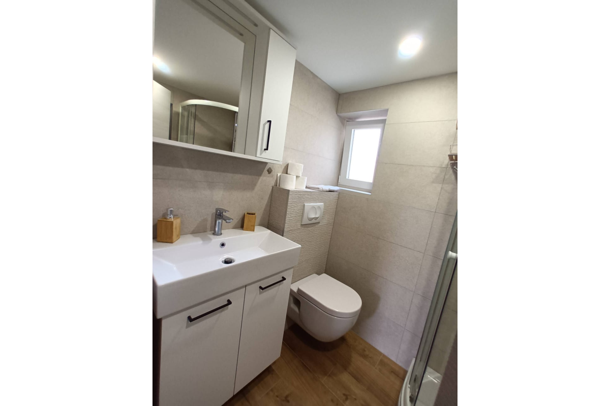 Modern ausgestattete Wohnung im Zentrum von Baška, nahe dem Meer. Die Wohnung befindet sich im 1. Stock eines Einfamilienhauses und besteht aus einem