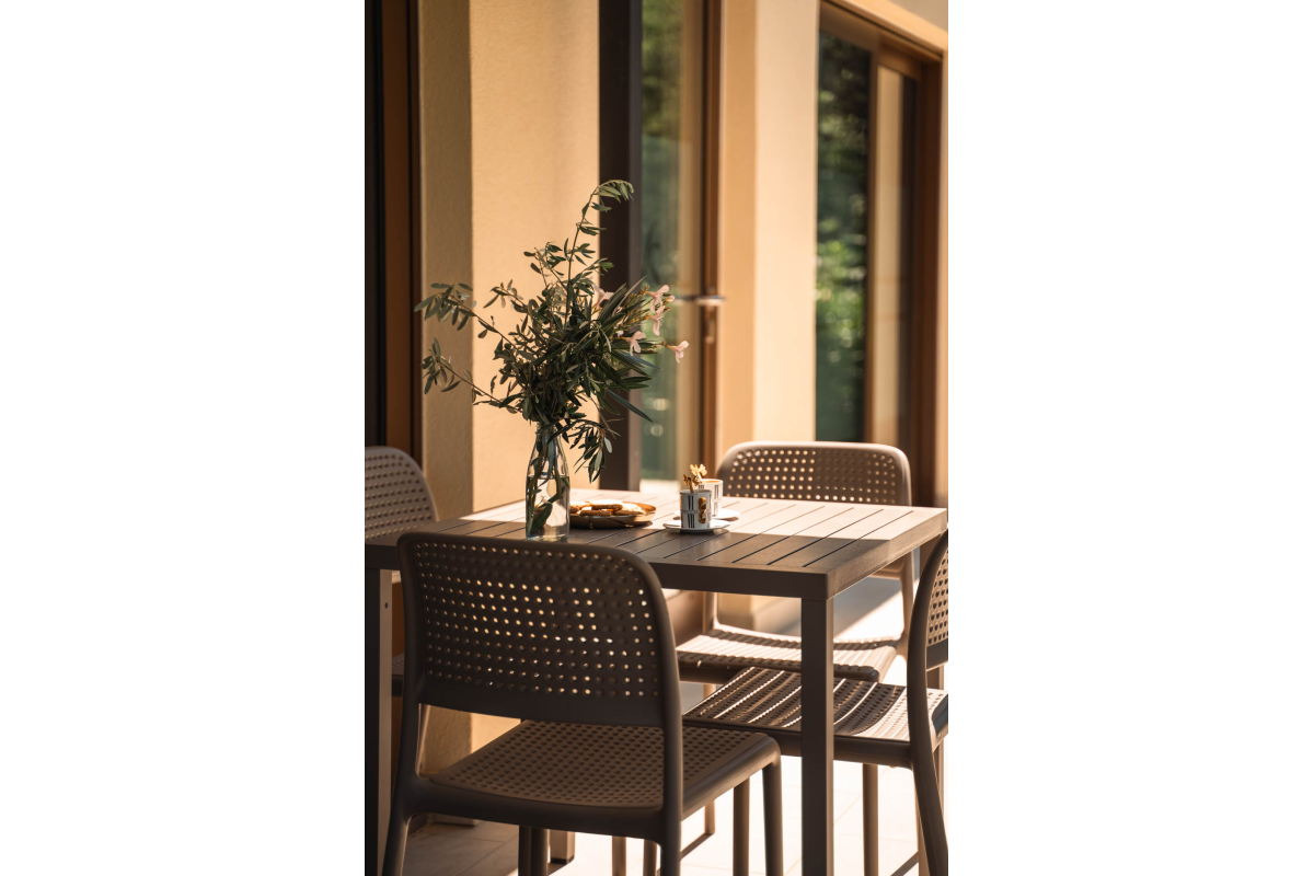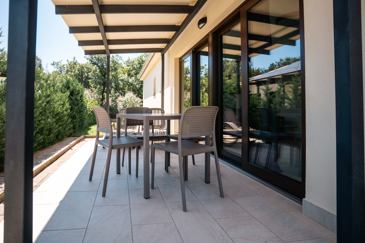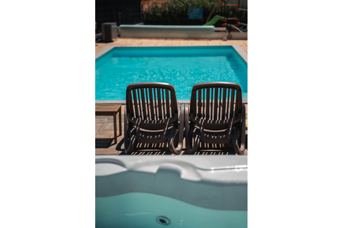 Das Resort besteht aus 12 komfortablen Apartments mit Fußbodenheizung, einer Außensauna, einem Whirlpool, einem beheizten Pool, einem Grillplatz und einem Ruhebereich.