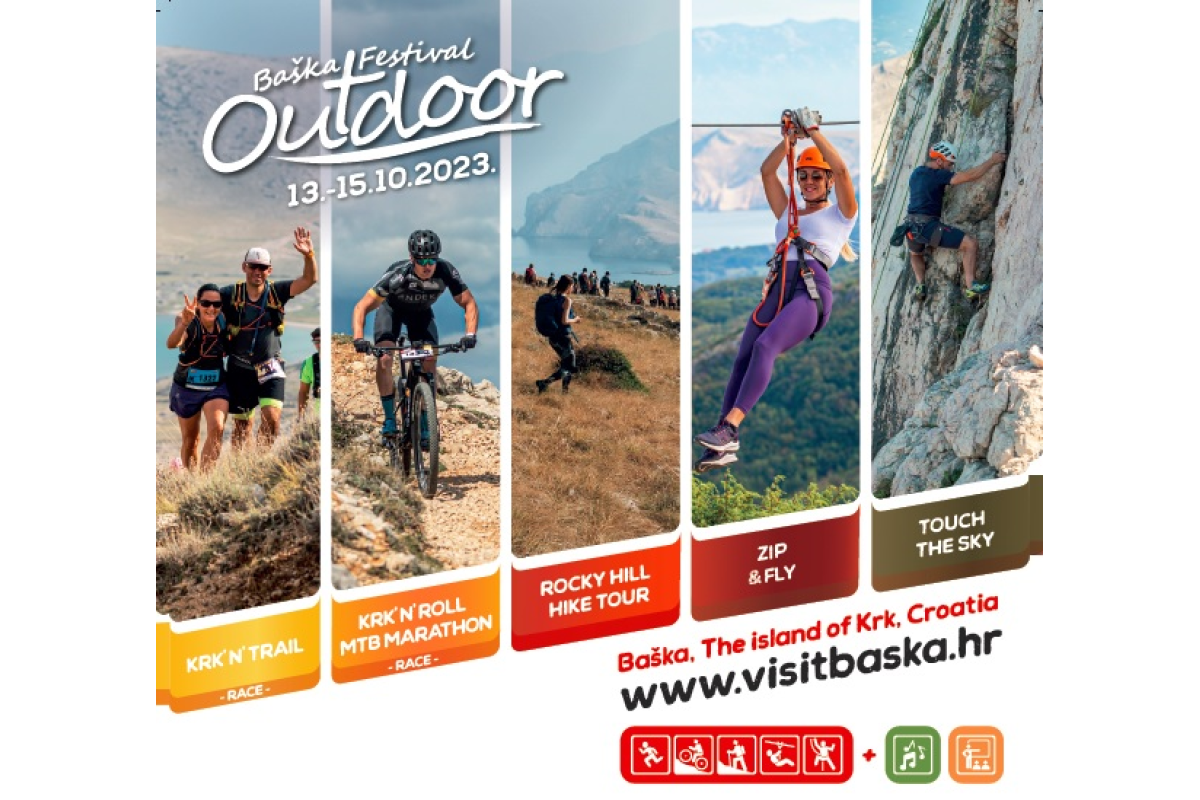 Baška auf der Insel Krk bietet seinen Besuchern, die Outdoor-Sportprogramme wünschen, im Rahmen des 9. Outdoor-Festivals vom 13. bis 15. Oktober gleich fünf attraktive Outdoor-Sportprogramme, von Trailrunning, Mountainbiken über Wandern bis Klettern und Klettern Zipline, mit besonderen Unterbringungsmöglichkeiten.