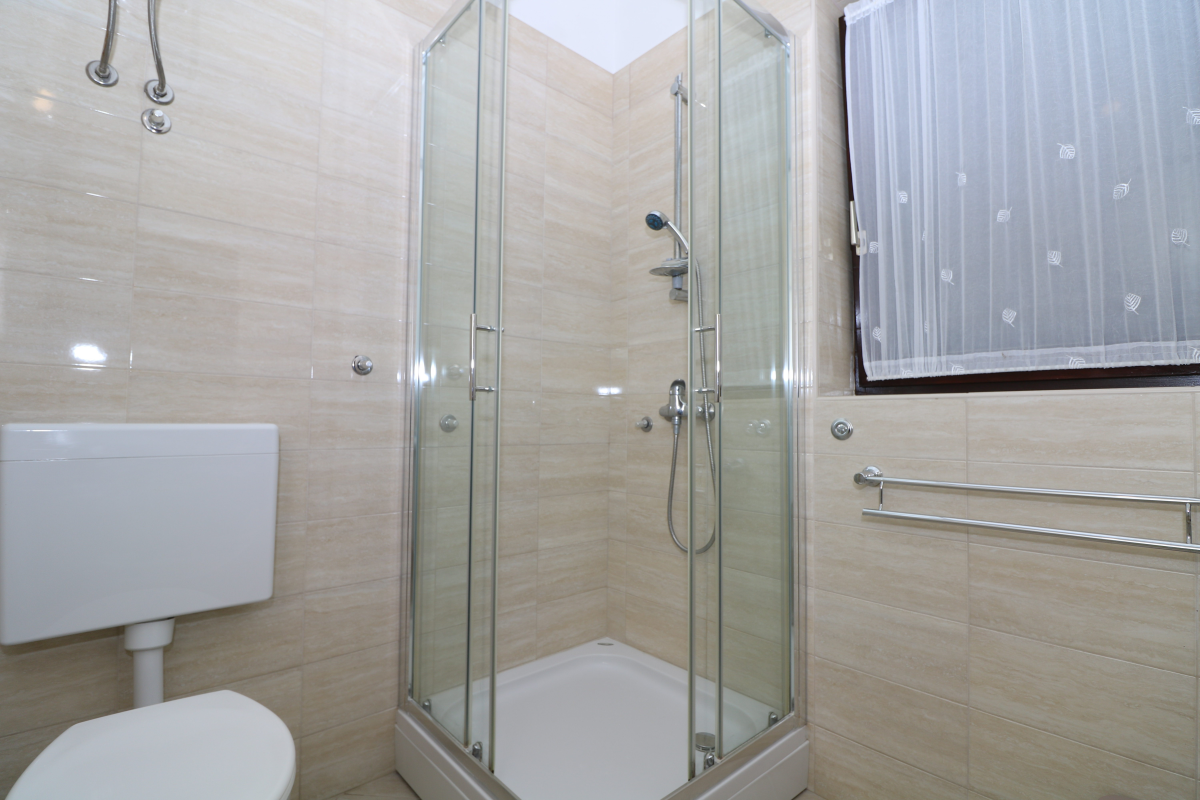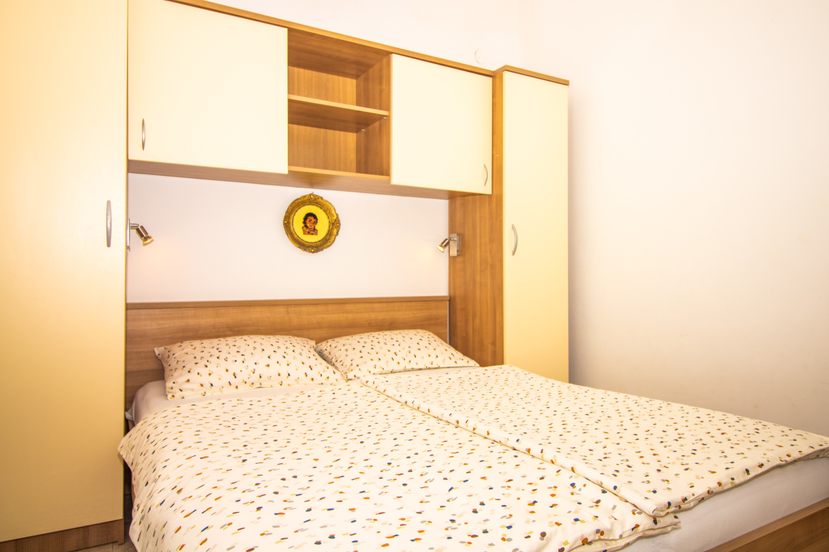 Prekrasan apartman na prvom katu obiteljske kuće udaljen samo 100 metara od mora. Apartman se sastoji od dvije spavaće sobe, dnevnog boravka, kuhinje sa blagavaonicom, dvije kupaonice te prekrasnog balkona sa kojeg se pruža pogled na more. Također apartman raspolaže sa klima uređajem, SAT TV-om i Wi-Fi. Apartman je prostran te je idealan za 5 osoba. Parking se nalazi ispred kuće.