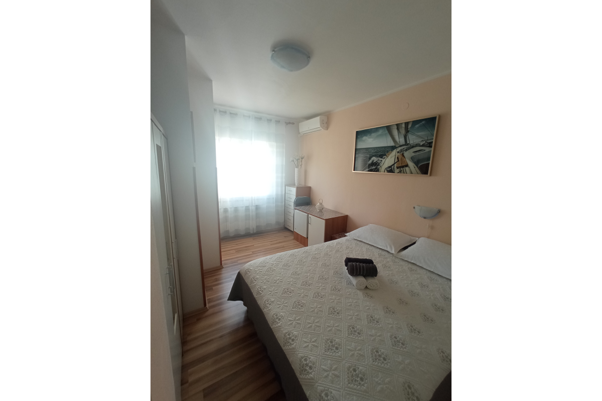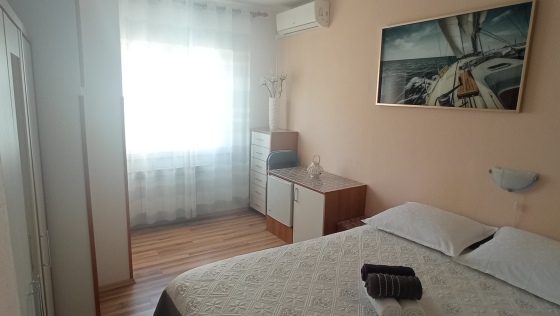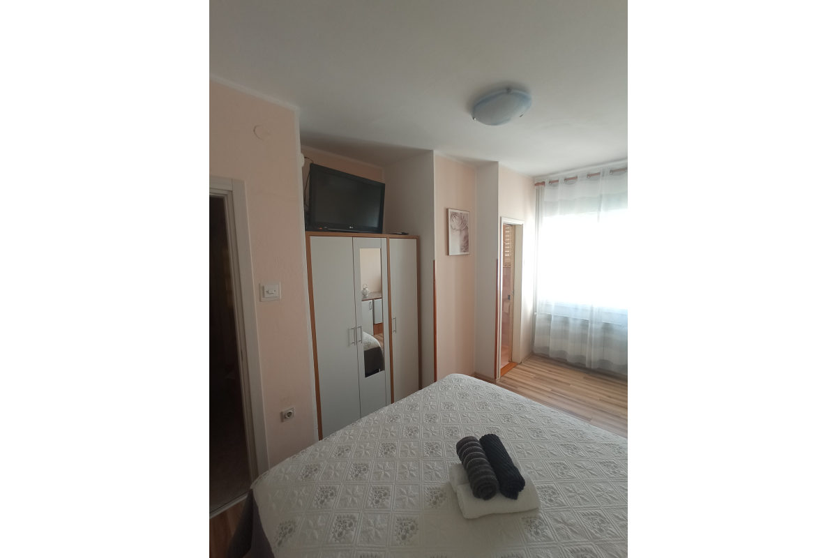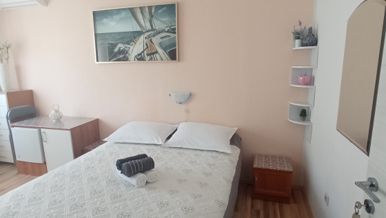 Udobna soba smještena samo 300 m od mora. Soba se nalazi na prvom katu i raspolaže jednim dvokrevetnim krevetom,Tv-Sat, Wi-fi, klima uređajem,mini hladnjakom te kupaonicom. Soba nema terasu . Maximalan broj gostiju koji može boraviti u ovoj sobi je 2 osobe.