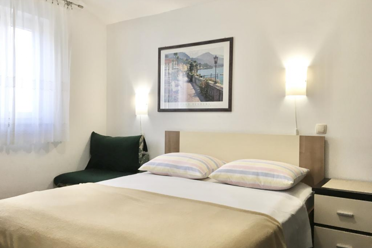 Udoban apartman na 2. katu u blizini mora. Apartman raspolaže sa jednom dvokrevetnom spavaćom sobom, kuhinjom s dnevnim boravkom / blagovaonicom, kupaonicom, klima uređajem, SAT TV, wifi , te prekrasnom terasom. Parking se nalazi ispred kuće. Maximalan broj gostiju koji može boraviti u ovom apartmanu je 4 osobe.