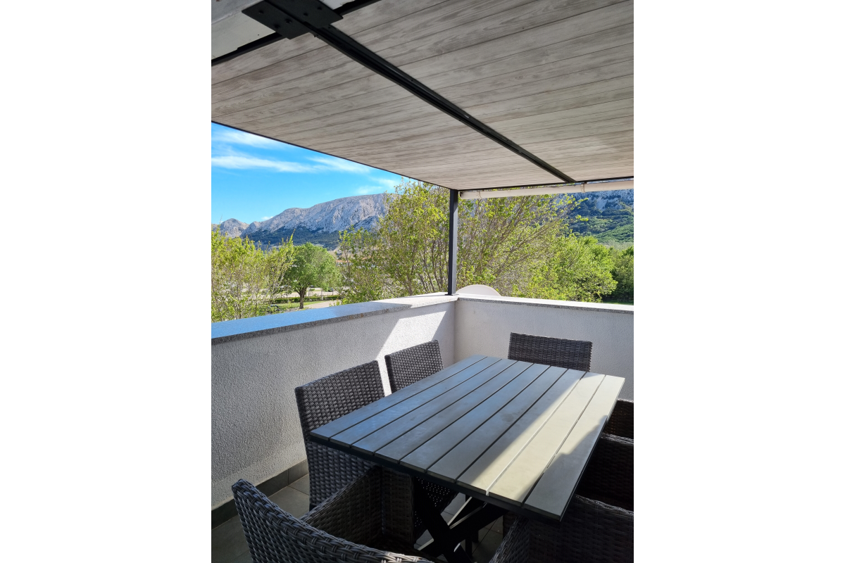 Moderan i luksuzan dvoetažni apartman udaljen samo 250 metara od mora. Apartman se sastoji od 4 soba od kojih su 2 dvokrevetne spavaće sobe i 2 dnevne sobe. Također raspolaže sa moderno opremljenom kuhinjom , dnevnim boravkom/blagavaonicom, te još jednim dnevnim boravkom na 2.etaži. Apartman ima 2 kupaonice te balkon na svakoj etaži. Osim toga, apartman ima klimu, WiFi, SAT / TV, perilicu suđa, perilicu rublja, pećnicu, mikrovalnu, te za najmlađe na raspolaganju je i stolica za hranjenje i dječji krevetić. Parkirno mjesto nalazi se ispred apartmana. Maksimalan broj gostiju u ovom apartmanu je 6 osoba.