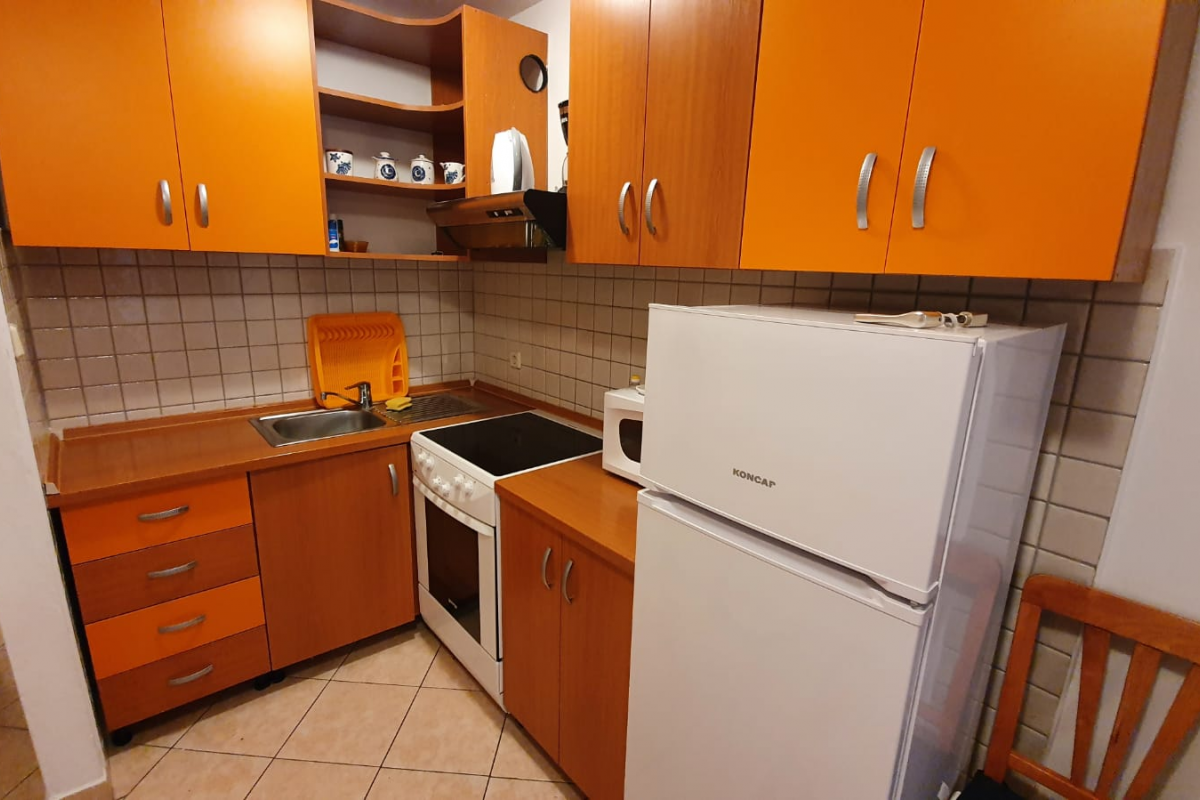 Apartman ima namještenu terasu. Pogodan je za najviše tri osobe.