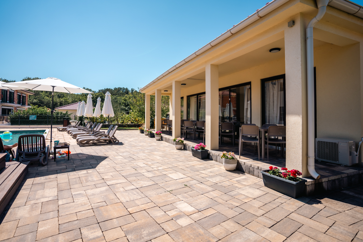 Resort se sastoji od 12 udobnih apartmana s podnim grijanjem, vanjskom saunom, jacuzzijem , grijanim bazenom, prostorom za roštilj i zonom za opuštanje.