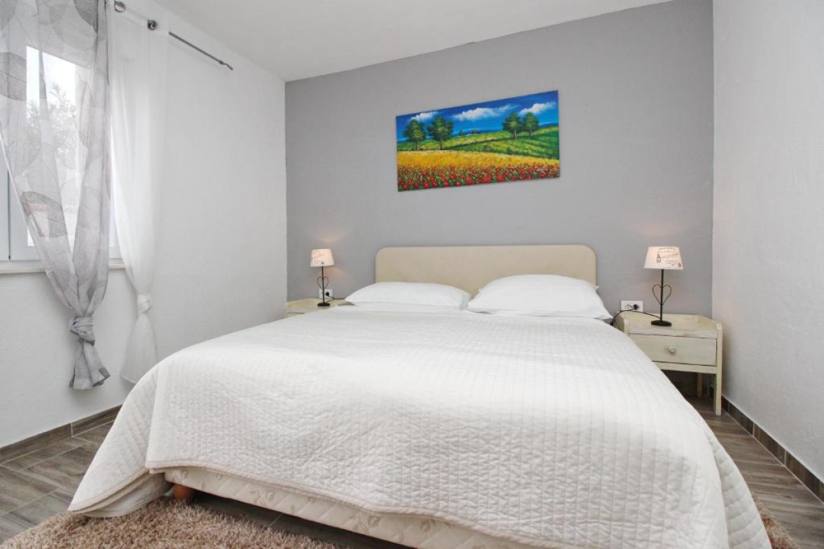 Prekrasan novoopremljen apartman udaljen samo 250 metara od mora.Apartman se nalazi u prizemlju i sastoji se od jedne dvokrevetne spavaće sobe, u sobi još jedan jednokrevetni krevet, kuhinje sa blagavaonicom, dnevnim boravkom sa kaučem na razvlačenje, kupaonicom, klima uređajem i WI-Fi. Ispred apartmana nalazi se velika terasa sa vrtnom garniturom i grillom.Maximalan broj gostiju koji mogu boraviti u ovom apartmanu je 4 osobe.