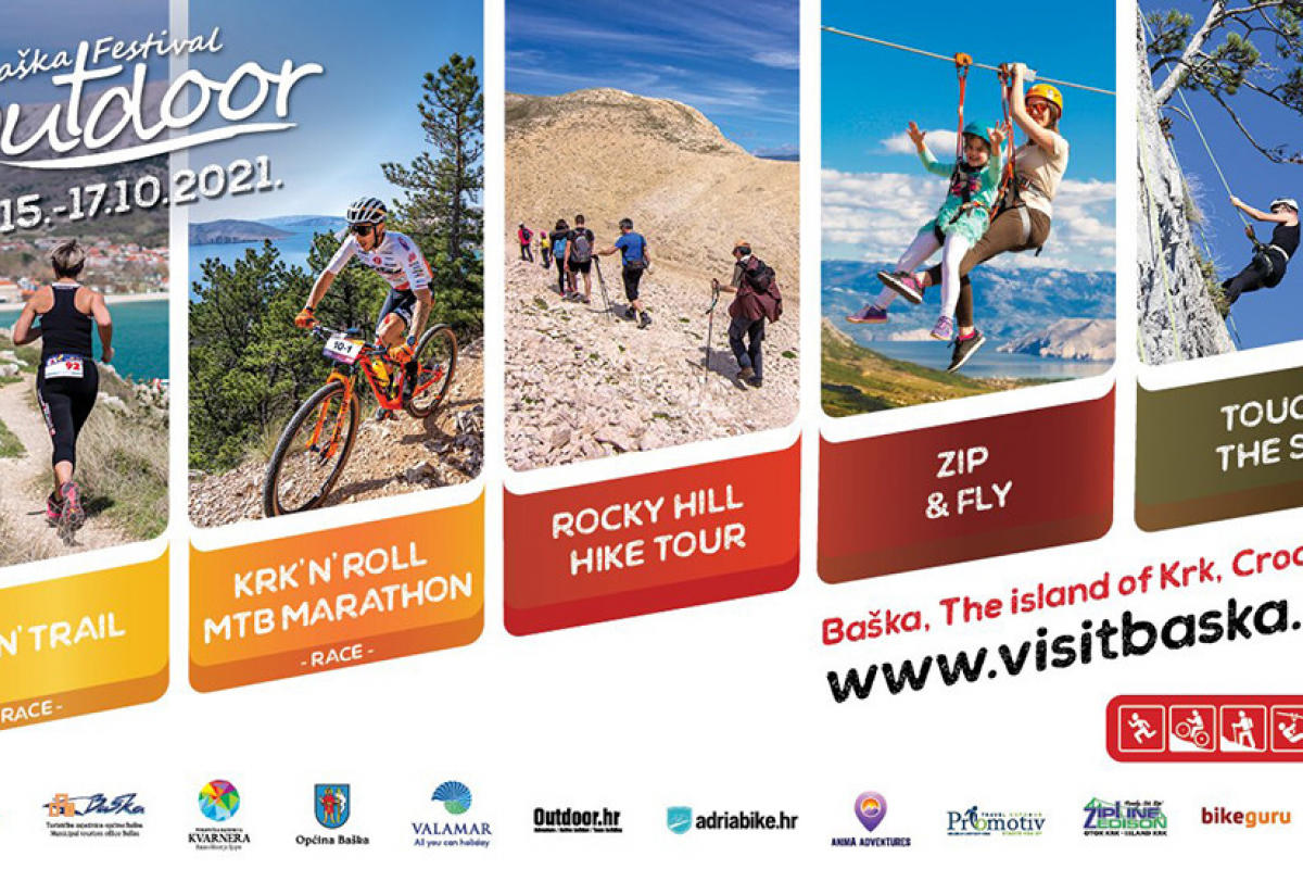 Najavljujemo sedmi po redu Baška Outdoor Festival koji nudi uživanje u brojnim outdoor avanturama, točnije u pet atraktivnih outdoor sportskih programa, od trail trčanja, brdskog biciklizma, preko planinarenja do sportskog penjanje na stijeni i ziplinea, sve uz posebne pogodnosti smještaja i brojne popratne sadržaje!Festival je u svom petom izdanju, 2019. godine, osvojio nagradu najboljeg outdoor događaja prema ocjenjivanju najvećeg outdoor magazina u Hrvatskoj "People Outdoors" – projekt Prvi Outdoor Oscar te potvrdio status najposjećenijeg izvansezonskog događanja na otoku Krku, s brojnim sudionicima koji su uživali u raznovrsnim mogućnostima outdoor avantura u Baški!Zahvaljujući prirodnim ljepotama jedinstvenog krajolika Baške, koje su idealna kulisa za različite vrste outdoor aktivnosti, svi zaljubljenici aktivnog i sportskog načina života pronaći će nešto za sebe u bogatom trodnevnom programu ovogodišnjeg izdanja Baška Outdoor Festivala, koji organiziraju Turistička zajednica općine Baška, u partnerstvu s Valamarom i organizatorima sportskih sadržaja.