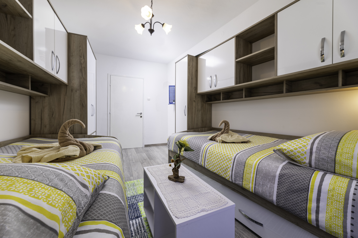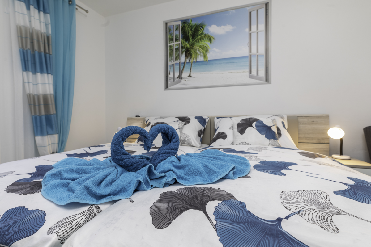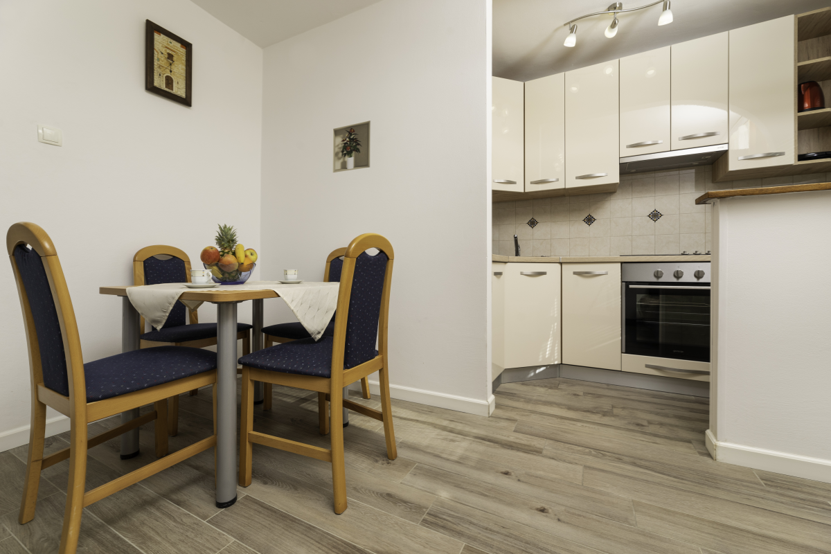This oasis of serenity is located on the ground floor of a family house in the old part of the city and is the ideal accommodation for anyone looking for peace and enjoyment in their dream vacation. This carefully decorated apartment has two bedrooms, a kitchen, a living room/dining room, a bathroom with a shower and a beautiful large terrace. The apartment is also equipped with air conditioning, satellite TV, wireless Internet access, a washing machine and an oven. The parking place is only 50 meters from the apartment. The maximum number of guests in this apartment is 4 people.