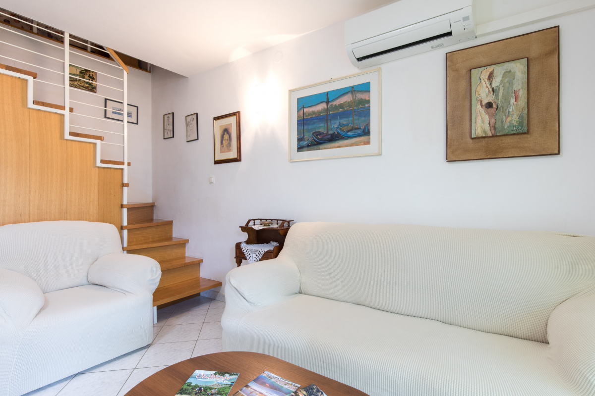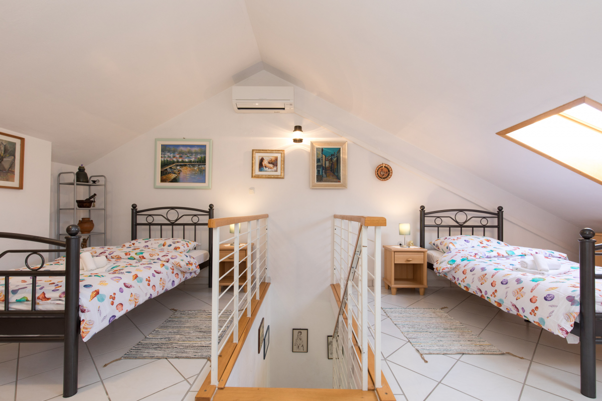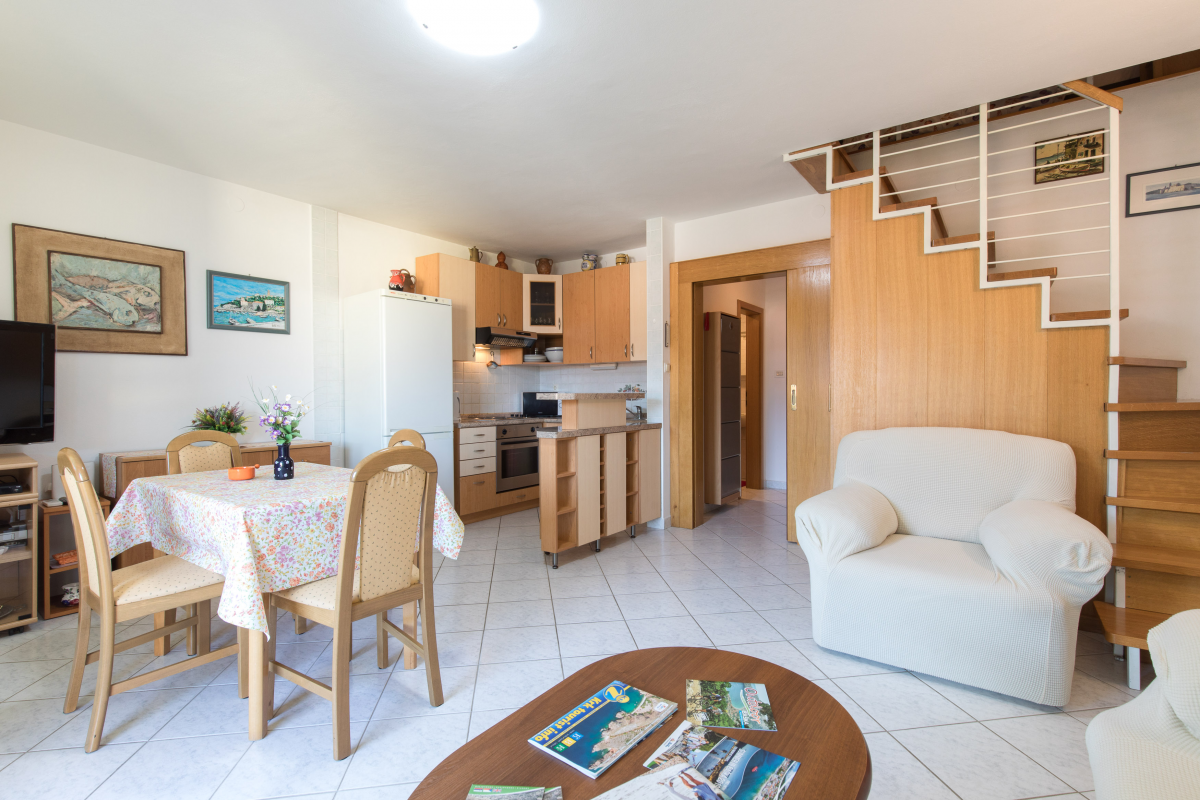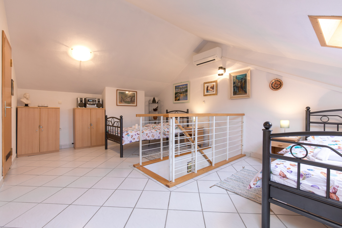 Comfortable and spacious apartment on the 2nd floor. The apartment has one double bedroom, gallery with three single beds, two bathrooms, kitchen with living room / dining room, oven, microwave, air conditioning and Wifi. One parking space is located in front of the apartment. The maximum number of guests in this apartment is 5 people.