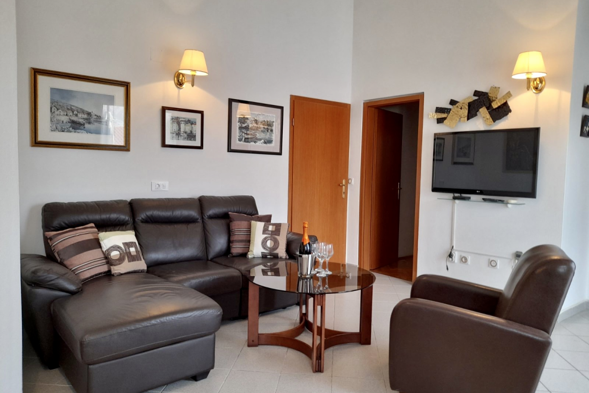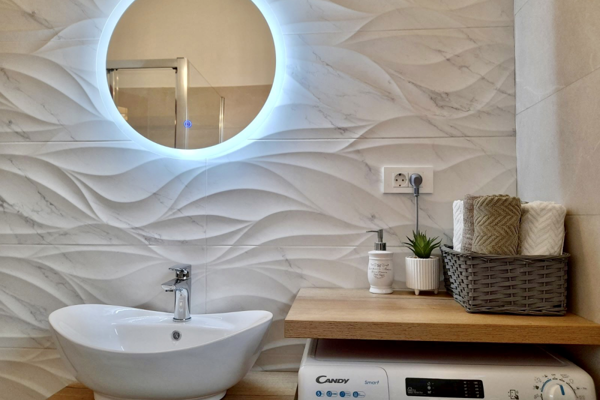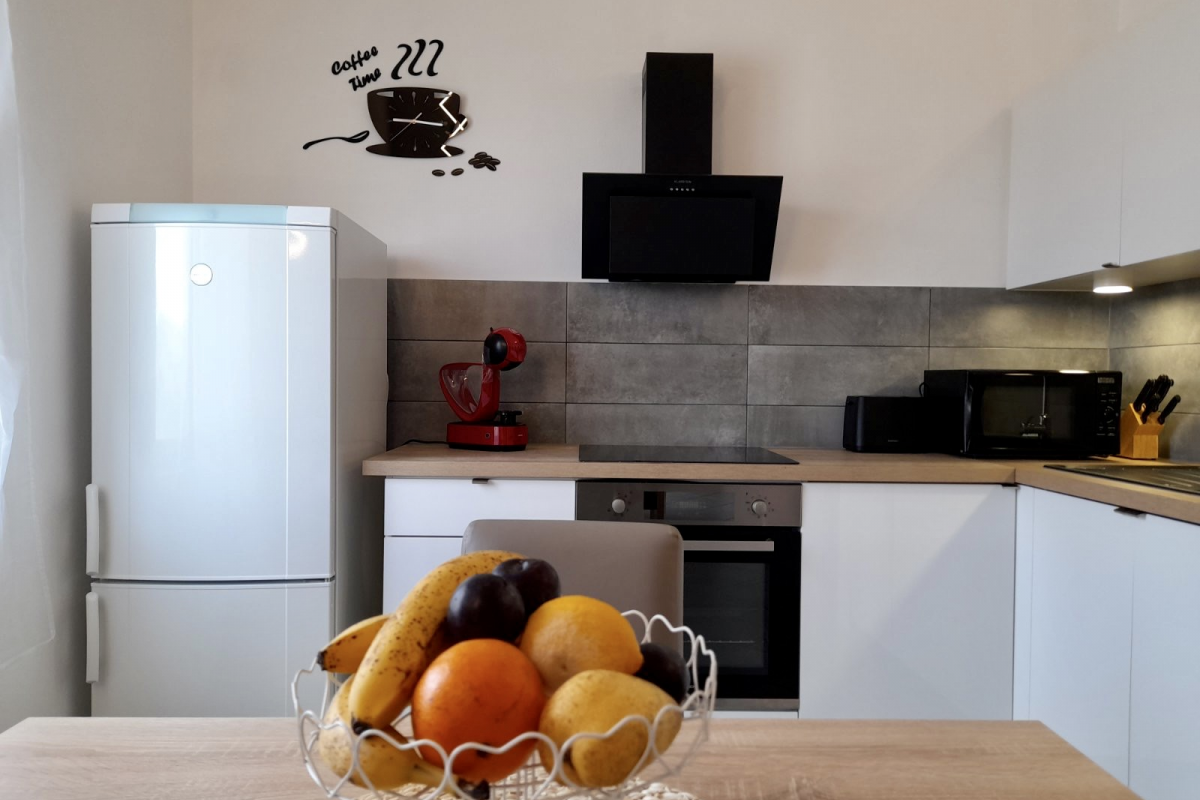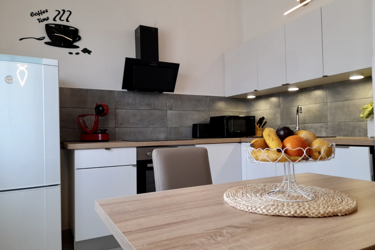 The modern apartment with two beautifully decorated bedrooms is located on the first floor in a quiet location, perfect for any guest looking for peace and relaxation. The apartment has two double bedrooms, a beautifully decorated living room and a kitchen, a dishwasher, a microwave, a toaster, a bathroom with a shower, a washing machine and a balcony, satellite, WiFi internet, a fenced parking lot, the possibility of using a barbecue and tastefully decorated and carefully maintained garden. The maximum number of guests in this apartment is 4 people.