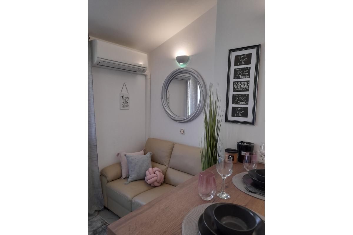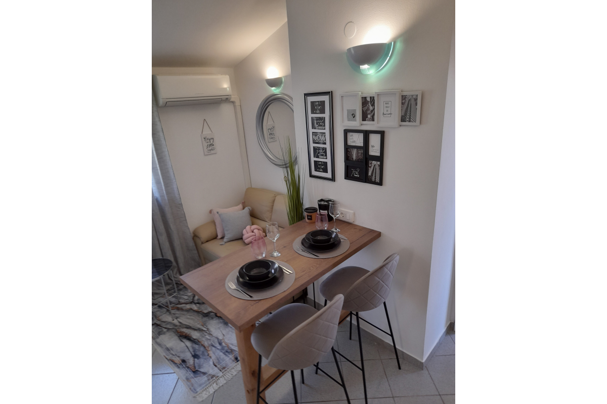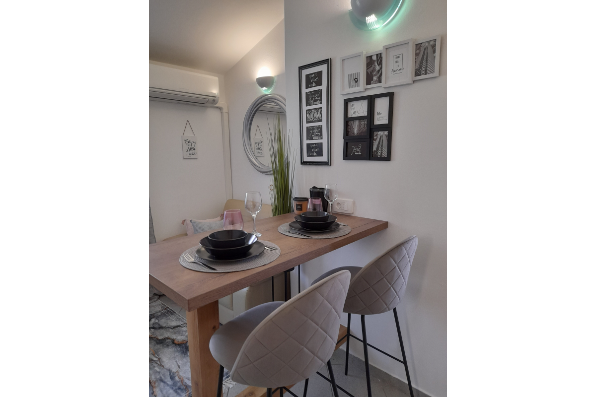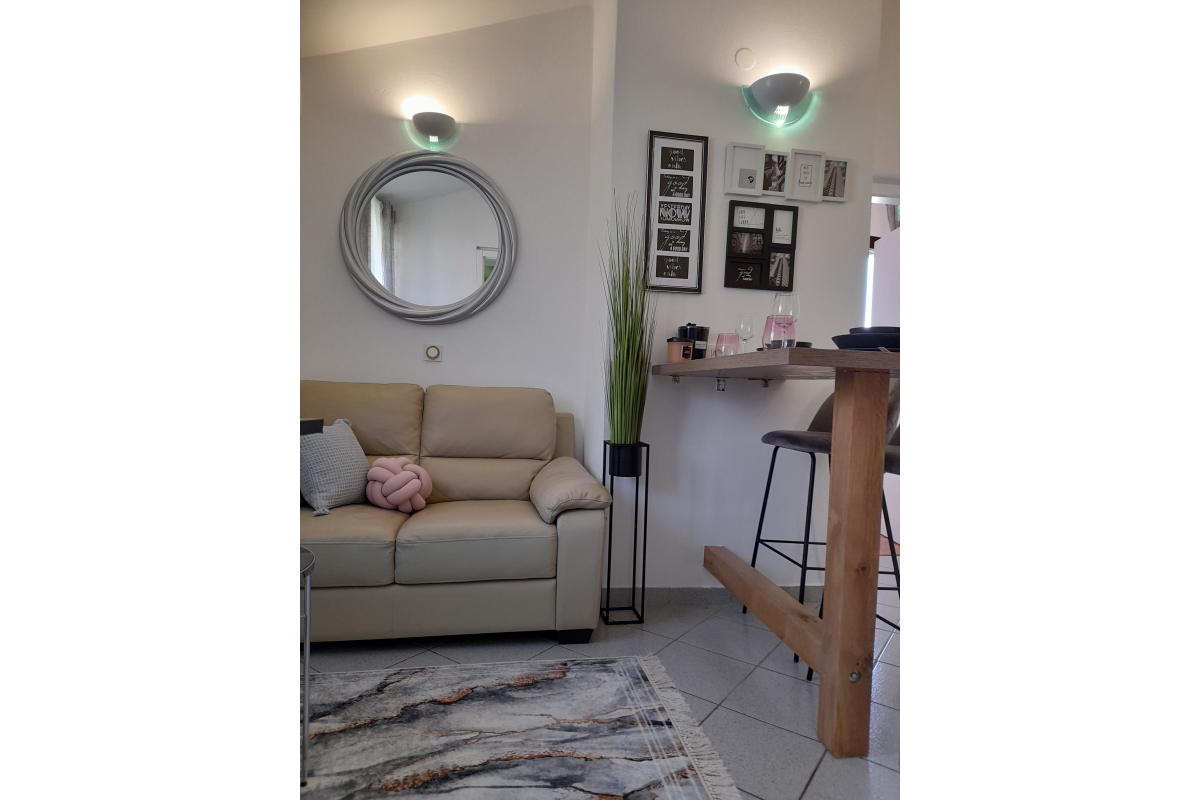 This apartment is a beautifully decorated oasis of peace. The apartment is located on the first floor, ideal for two people and has a bedroom that has access to a nice balcony for two people, living room and small kitchen and a spacious bathroom with shower. This apartment also has satellite, WiFi internet, air-condition, parking and the possibility of using the barbecue. The maximum number of guests in this apartment is 2 people.