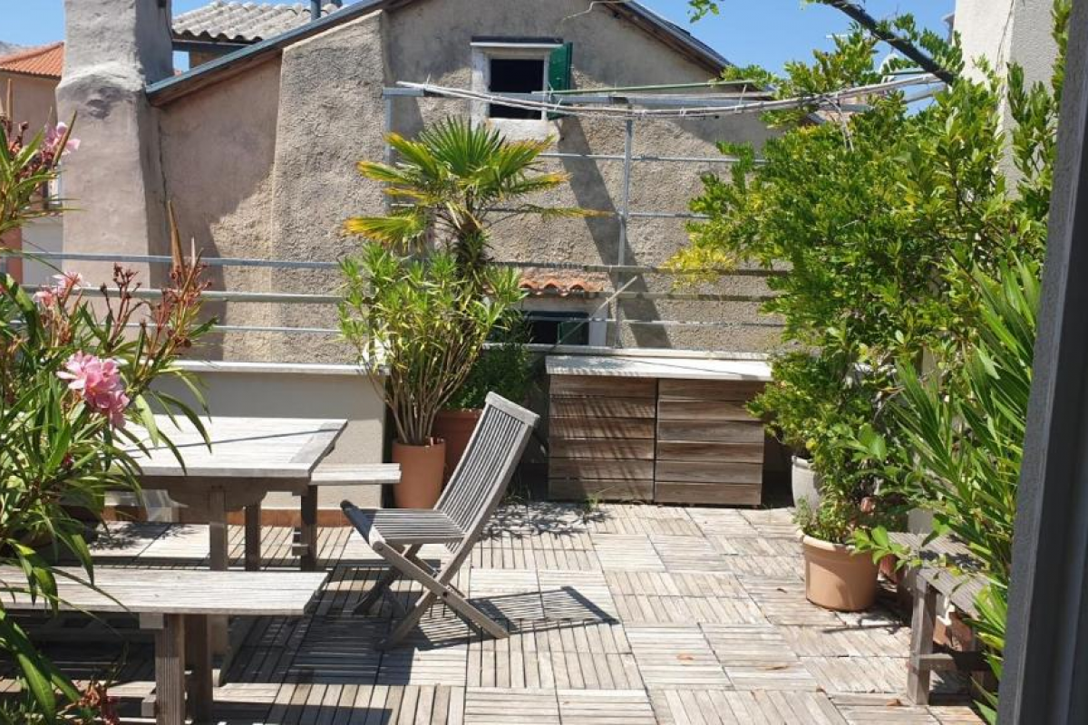Rustically decorated duplex apartment in the old part of Baska. On the ground floor there are two double bedrooms, living room and bathroom,