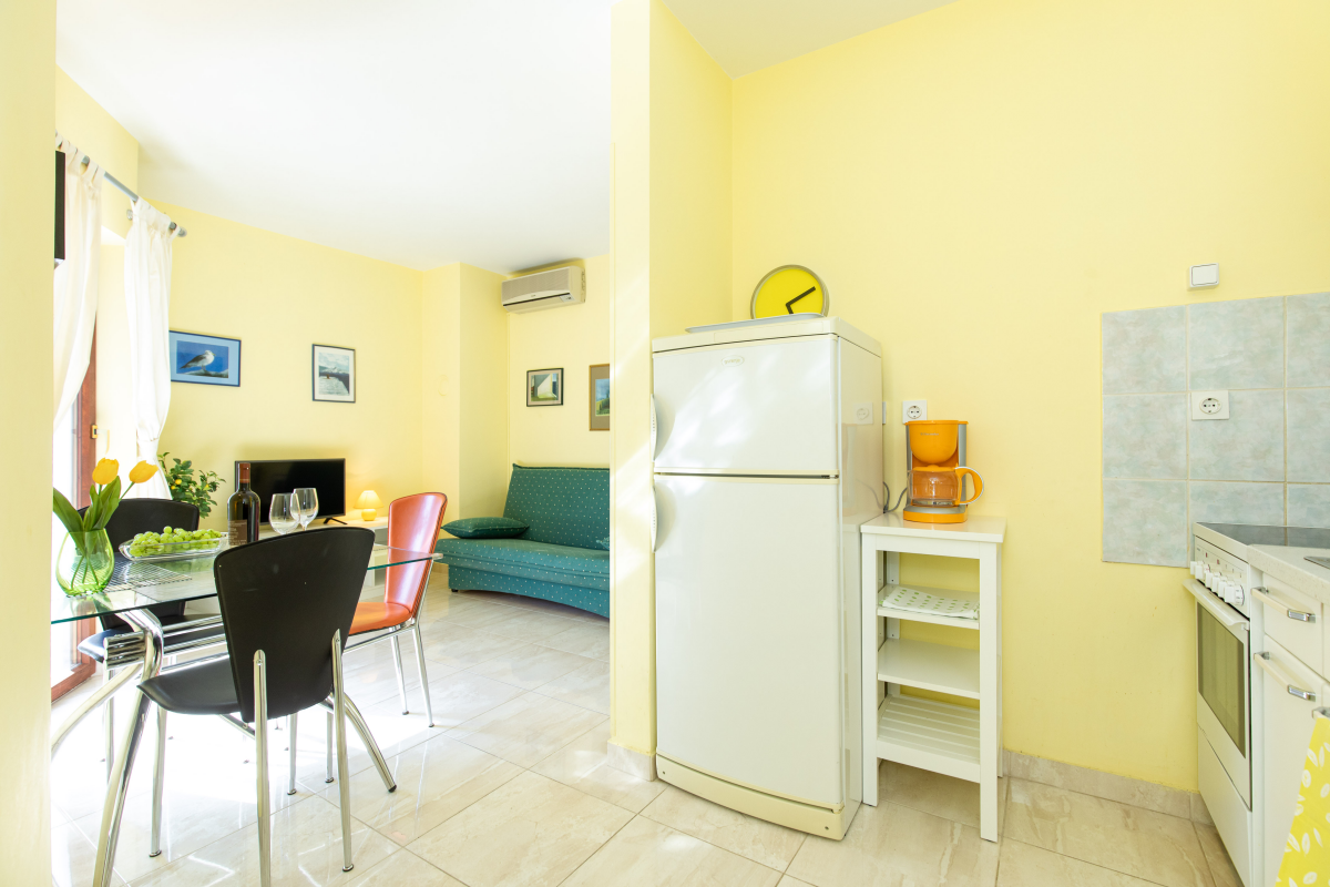 The apartment is located in a quiet location. It is approximately 550 m from the beach and 500 m from the center. The apartment is modern and nicely decorated and is located on the 1st floor.