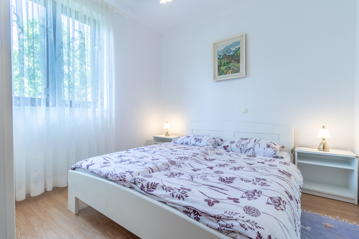 The apartment is located on the first floor and has two double bedrooms, kitchen, living room / dining room, bathroom with shower and a beautiful balcony. This apartment is air conditioned and has satellite TV and Wi-Fi access. Parking is located in front of the apartment. The maximum number of guests in this apartment is 5 people.
