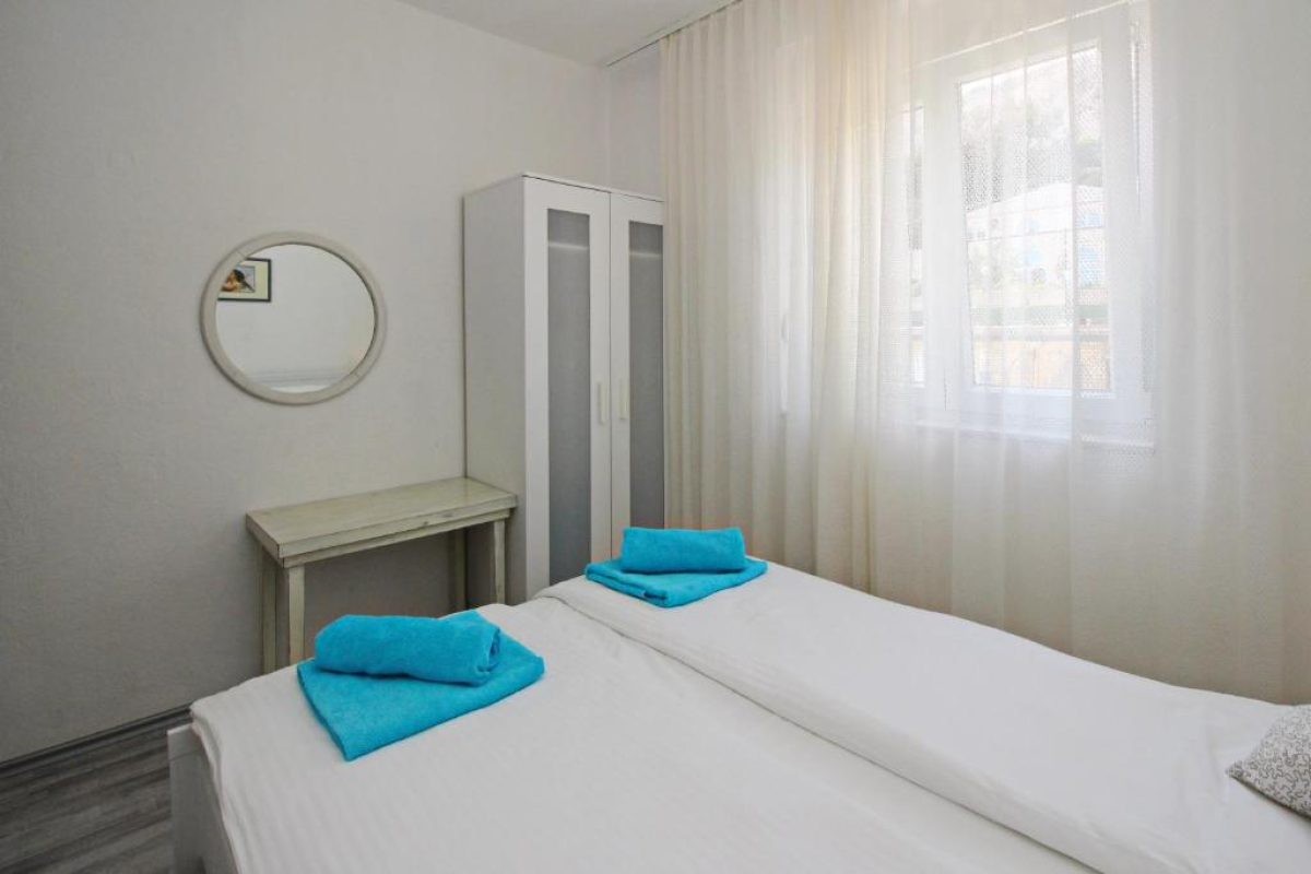 Beautiful newly furnished apartment only 250 meters from the sea. The apartment is located on the first floor and consists of two double bedrooms, one double bedroom has a bunk bed, kitchen with dining room and living room with sofa, bathroom, air conditioning and WI-Fi. The apartment has a large and spacious balcony with garden furniture and deck chairs. The maximum number of guests that can stay in this apartment is 6 people.