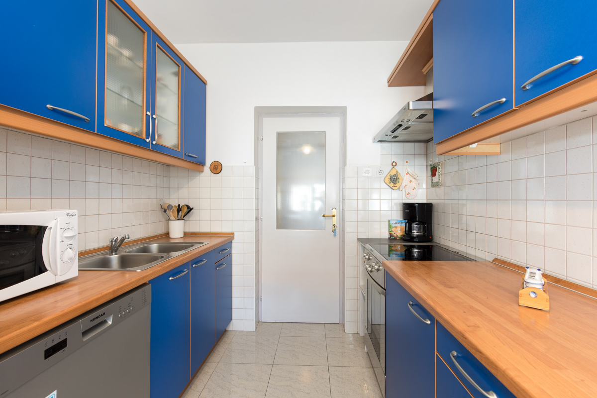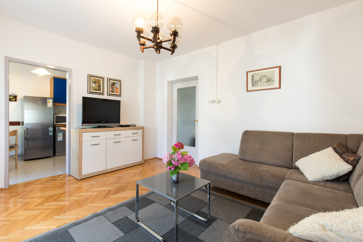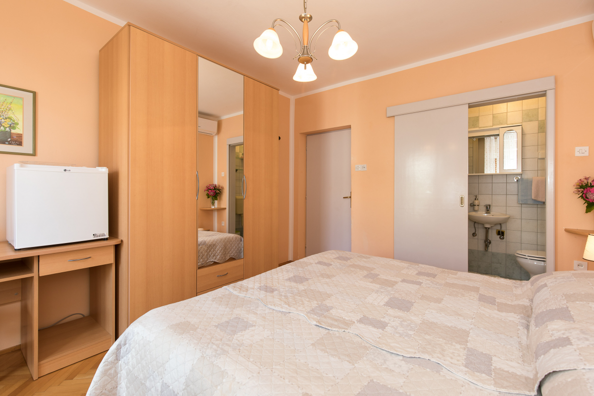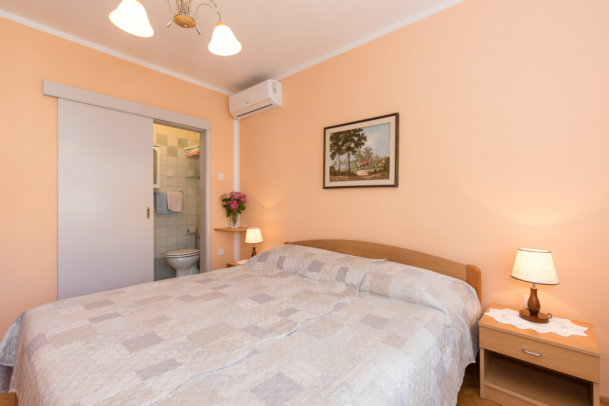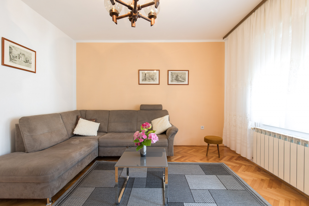 Beautiful apartment on the first floor of a family house. The apartment has two double bedrooms, each room has its own bathroom, kitchen with dining area, oven, dishwasher, living room and balcony. The apartment has air conditioning, satellite TV, WiF. Parking is located in front of the apartment. Maximum number of guests in this apartment is 6 people.
