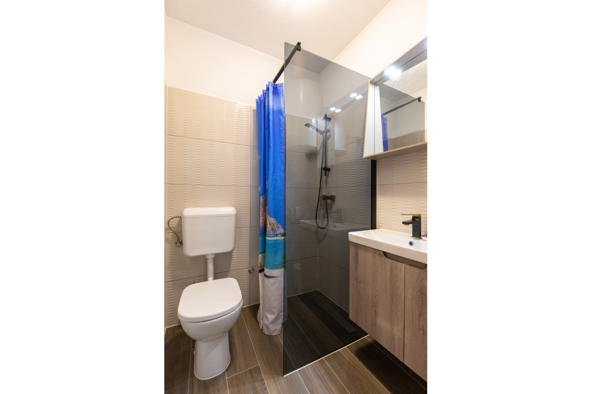 Nice ground floor apartment with large terrace. The apartment has one bedroom, kitchen, living / dining room and bathroom with shower. This apartment is air conditioned and has satellite TV and Wi-Fi access. Parking is located in front of the apartment. The maximum number of guests in this apartment is 2 people.
