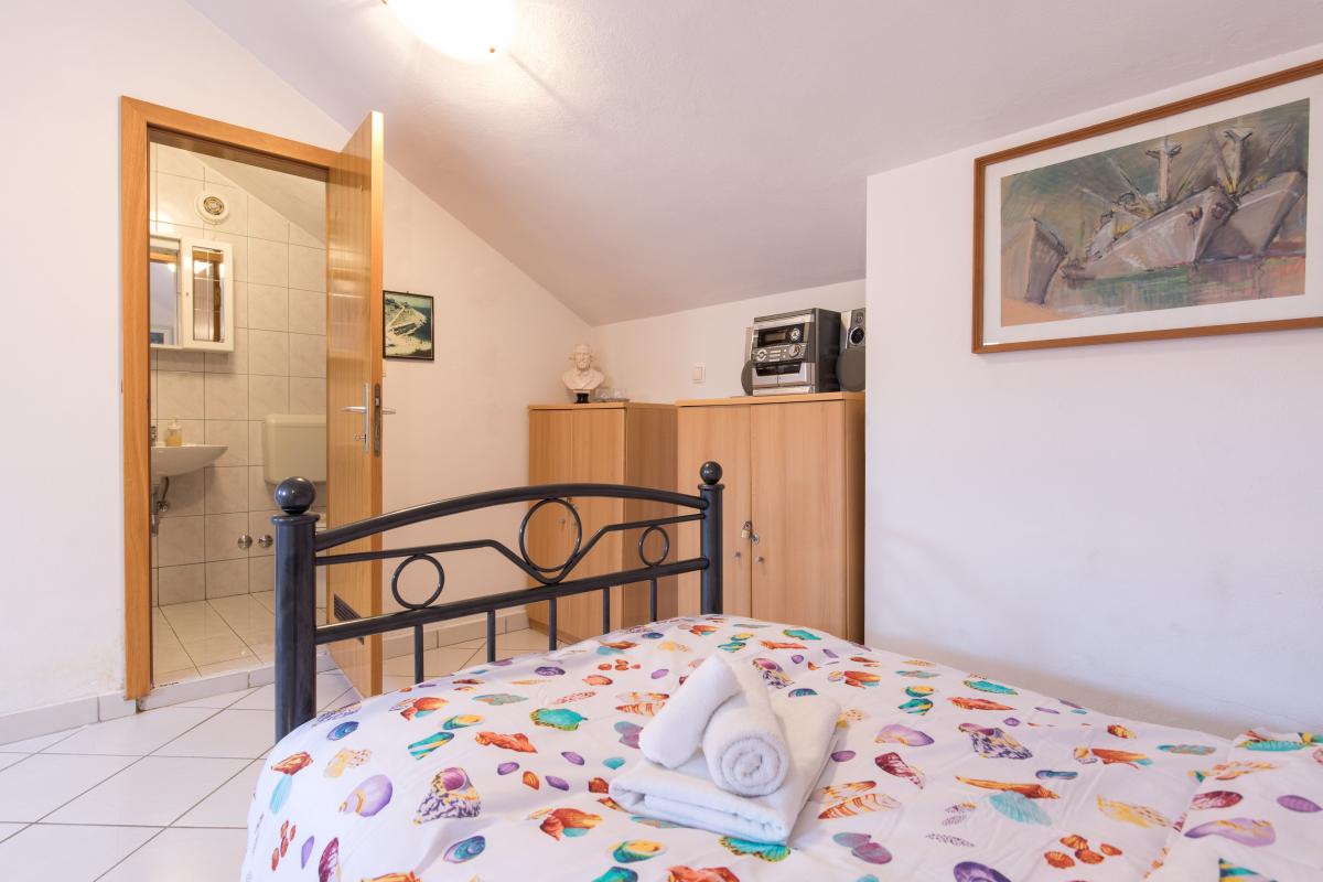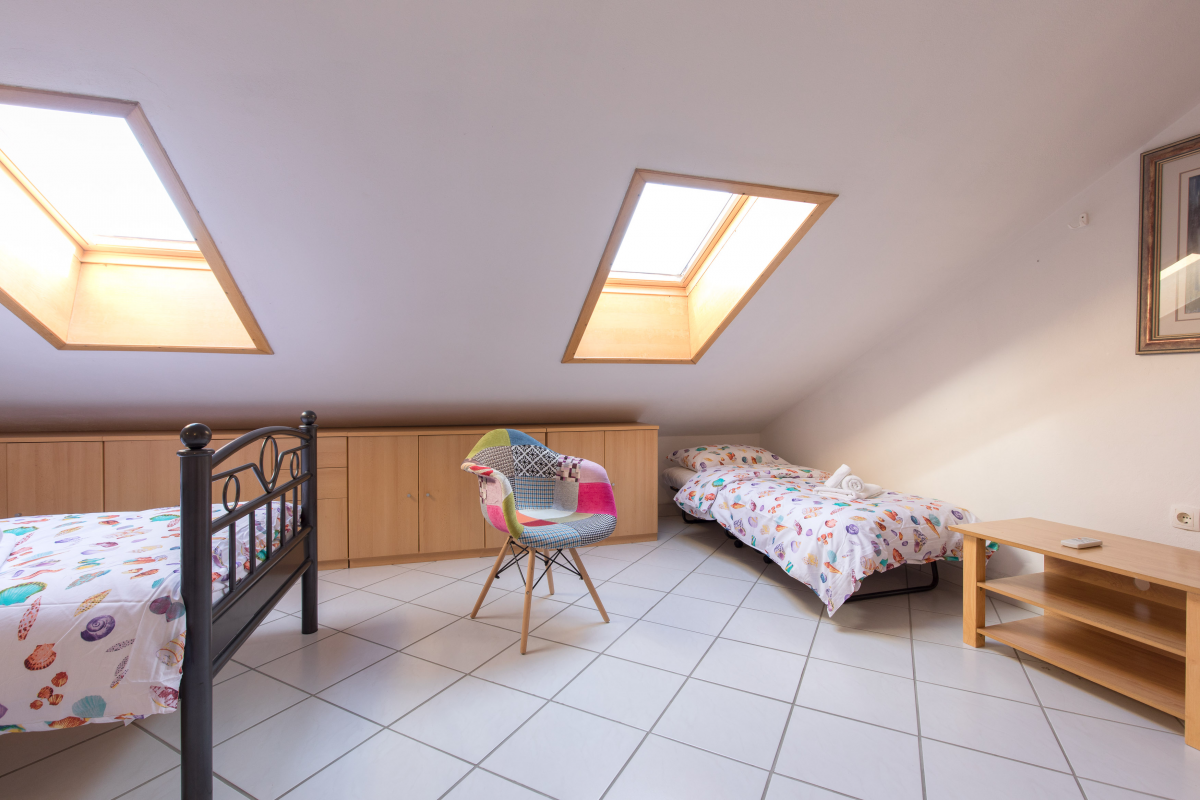Komfortable und geräumige Wohnung im 2. Stock. Die Wohnung verfügt über ein Schlafzimmer mit Doppelbett, eine Galerie mit drei Einzelbetten, zwei Badezimmer, eine Küche mit Wohn- / Esszimmer, Backofen, Mikrowelle, Klimaanlage und WLAN. Ein Parkplatz befindet sich vor der Wohnung. Die maximale Anzahl von Gästen in dieser Wohnung beträgt 5 Personen.