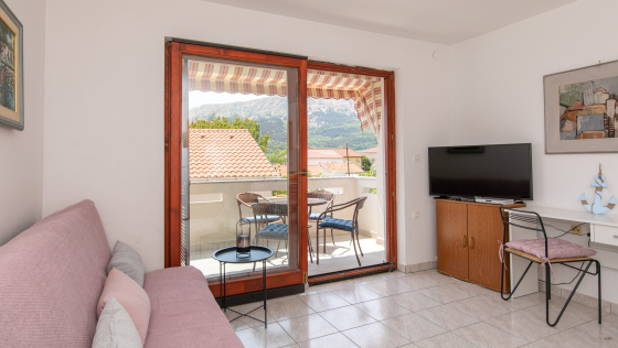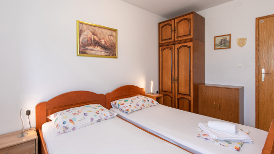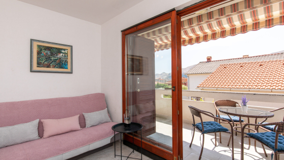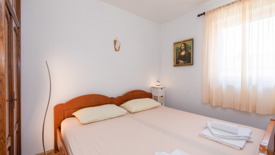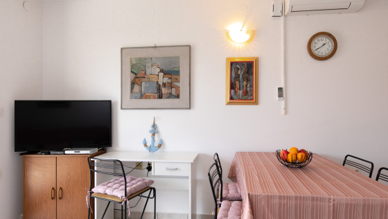 Schöne Wohnung im ersten Stock mit überdachtem Balkon. Die Wohnung verfügt über zwei Zweibettzimmer, eine Küche mit Wohn- / Esszimmer, einen Backofen, eine Mikrowelle und ein Badezimmer. Die Wohnung verfügt über Klimaanlage, Sat-TV, WiFi und einen Parkplatz vor der Wohnung. Die maximale Anzahl von Gästen in dieser Wohnung beträgt 5 Personen.