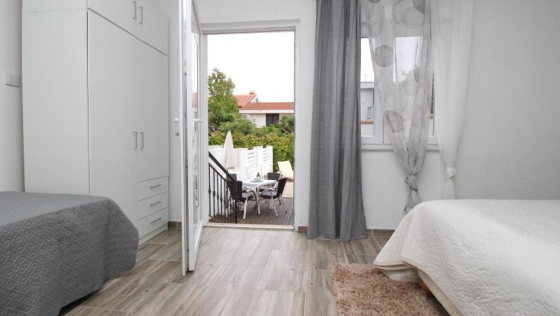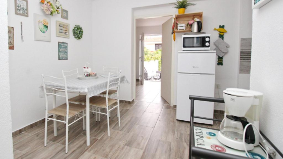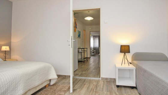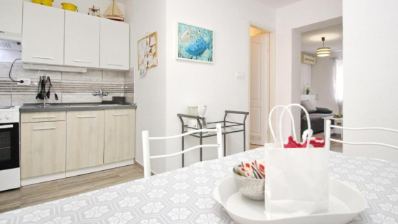 Schöne neu eingerichtete Wohnung nur 250 Meter vom Meer entfernt. Die Wohnung befindet sich im Erdgeschoss und besteht aus einem Schlafzimmer mit Doppelbett, einem weiteren Einzelbett im Zimmer, einer Küche mit Esszimmer, einem Wohnzimmer mit Schlafsofa, einem Badezimmer, einer Klimaanlage und WLAN. Vor der Wohnung befindet sich eine große Terrasse mit Gartenmöbeln und Grill. Die maximale Anzahl von Gästen, die in diesem Apartment übernachten können, beträgt 4 Personen.