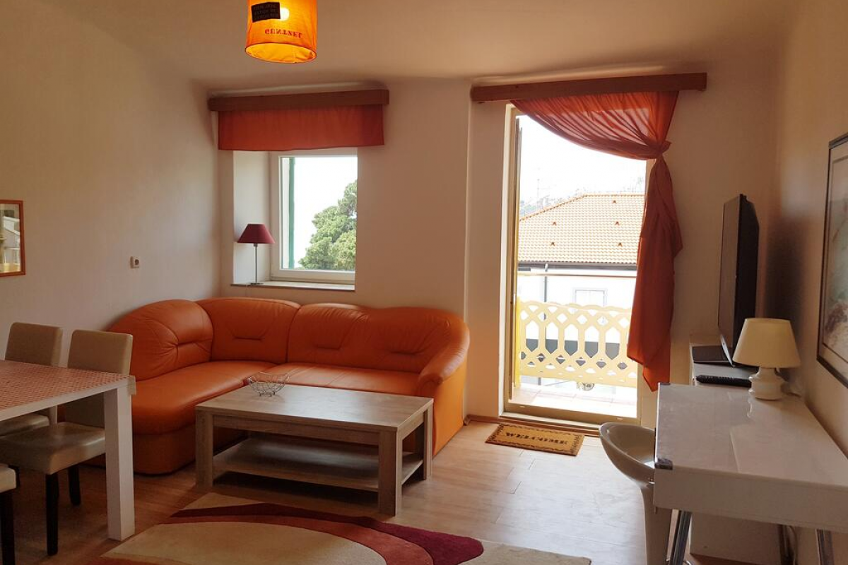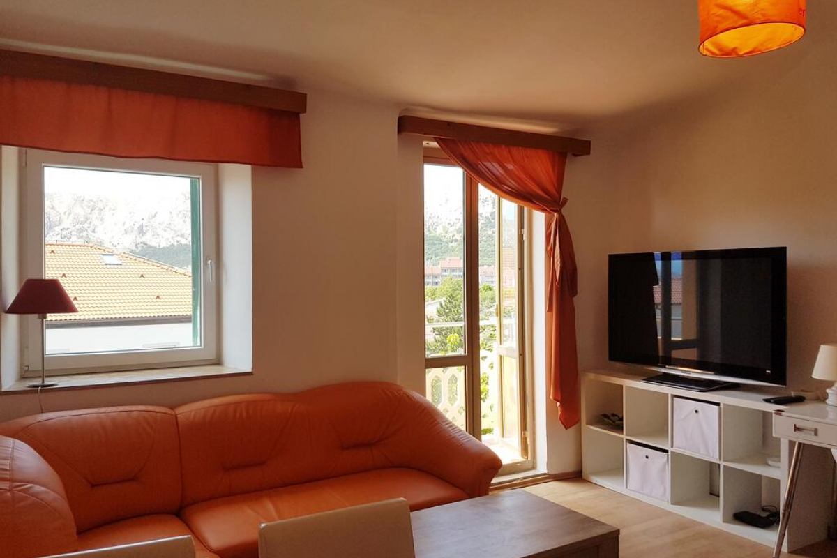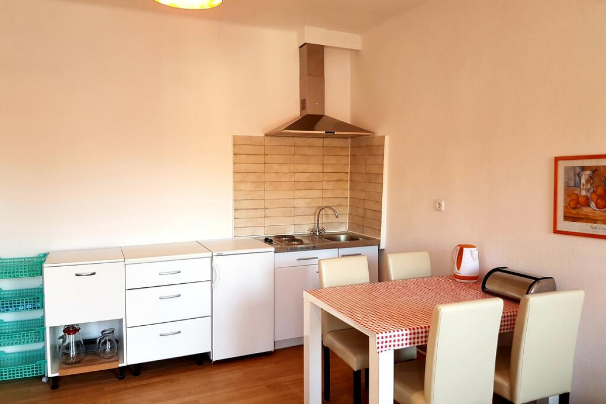 Die Wohnung verfügt über ein Schlafzimmer mit Doppelbett, eine Küche mit Esszimmer und ein Wohnzimmer mit Schlafsofa, Bad,