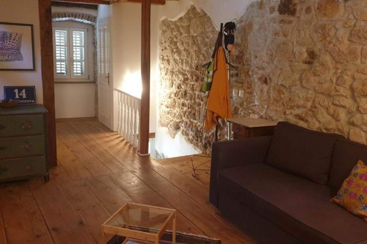 Rustikalno uređen dvoetažni apartman u starom dijelu Baške. U prizemlju apartmana nalaze se dvije dvokrevetne spavaće sobe, dnevni boravak i kupaonica,