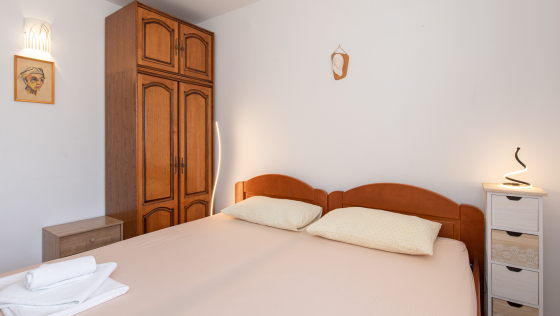 Lijep apartman na prvom katu sa natkrivenim balkonom.Apartman ima dvije dvokrevetnu spavaće sobe sa odvojenim krevetima, kuhinju sa dnevnim boravkom / blagovaonicom, pećnicom, mikrovalnom i kupaonicom. Apartman raspolaže sa klima uređajem, SAT TV-om, WiFi te jednim parkirnim mjestom ispred apartmana.Maximalan broj gostiju u ovom apartmanu iznosi 5 osoba.